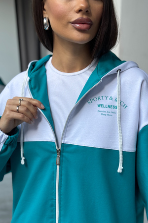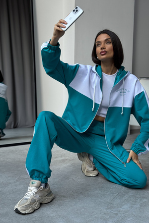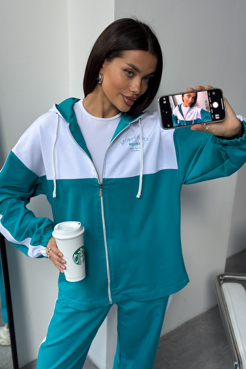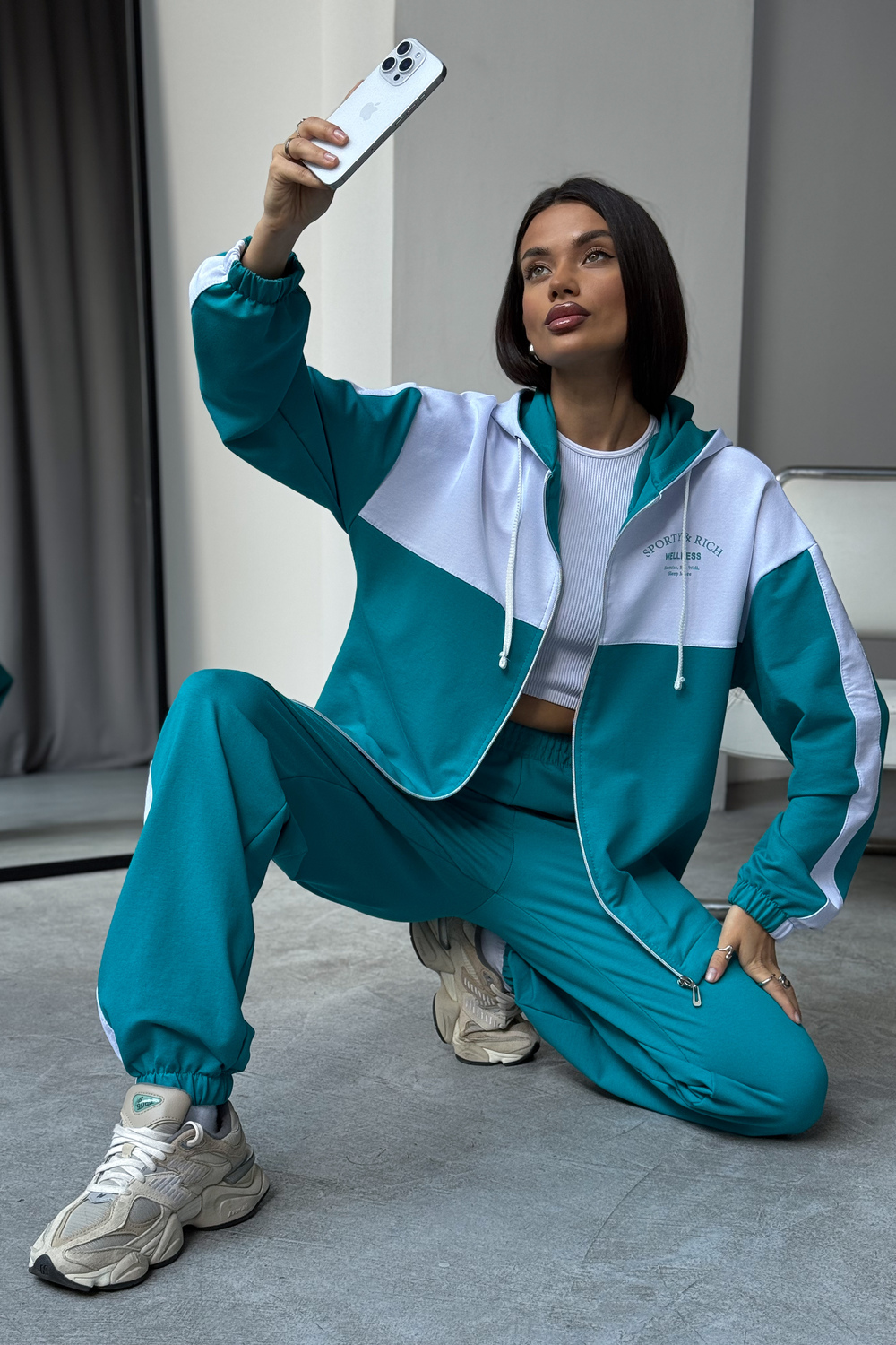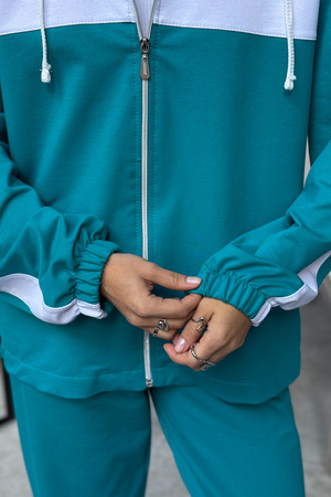 Женский спортивный костюм из трикотажа — идеальный выбор для тренировок, активных прогулок, дома или спортзала. Двойка состоит из худи на молнии с капюшоном и практичными брюками. Изделие выполнено из мягкого хлопка, что обеспечивает легкий и комфортный уход за вещью и удобство на каждый день.