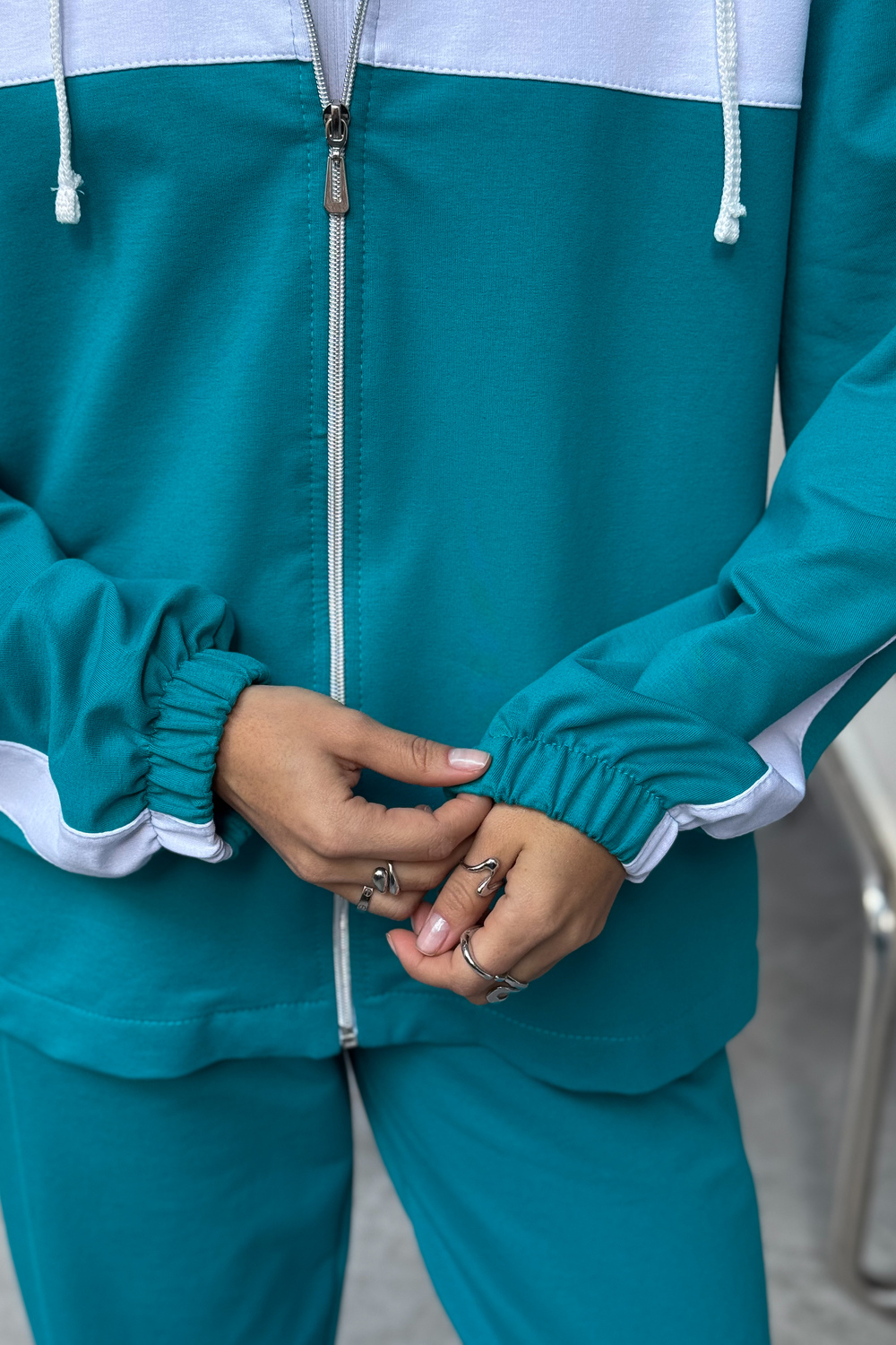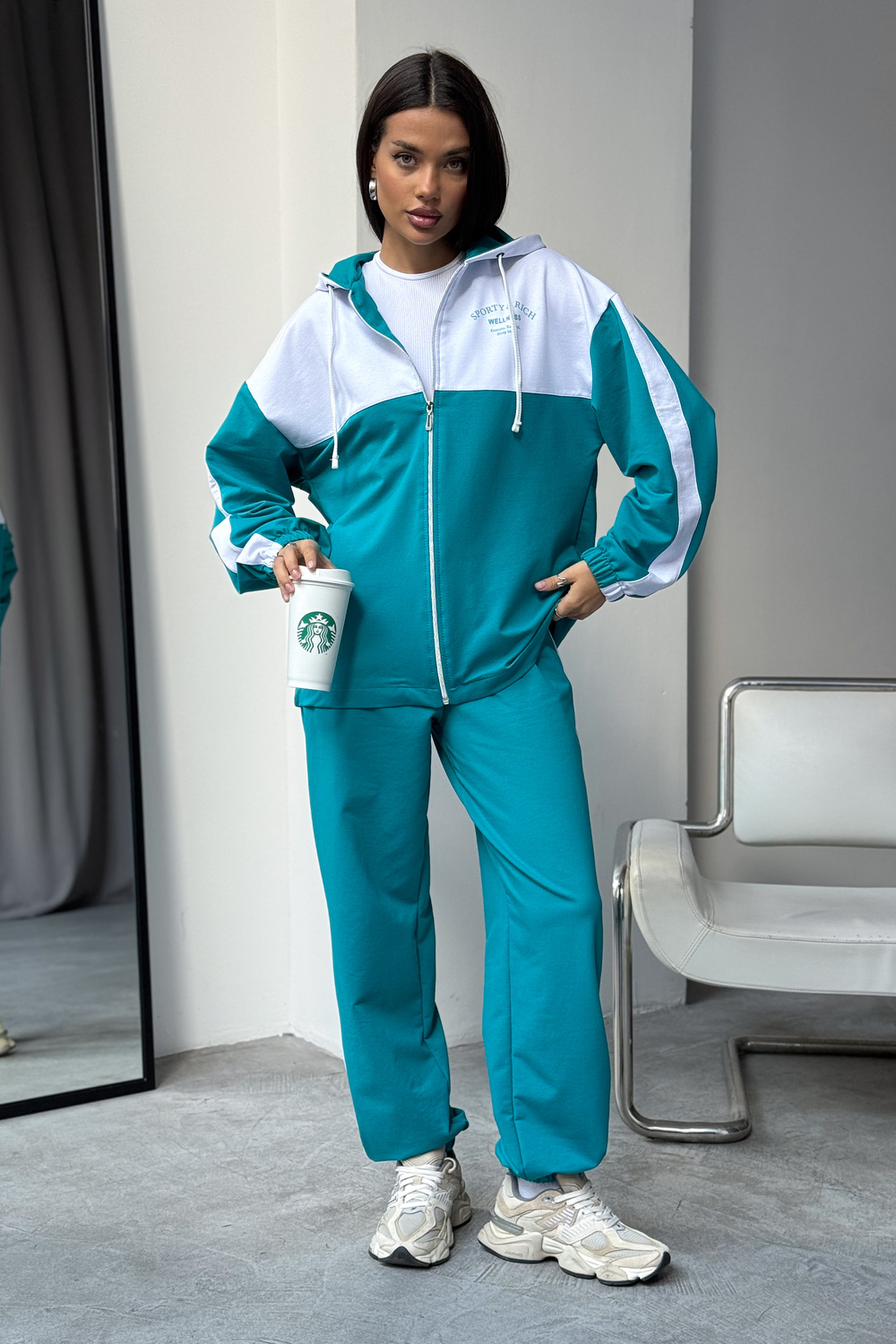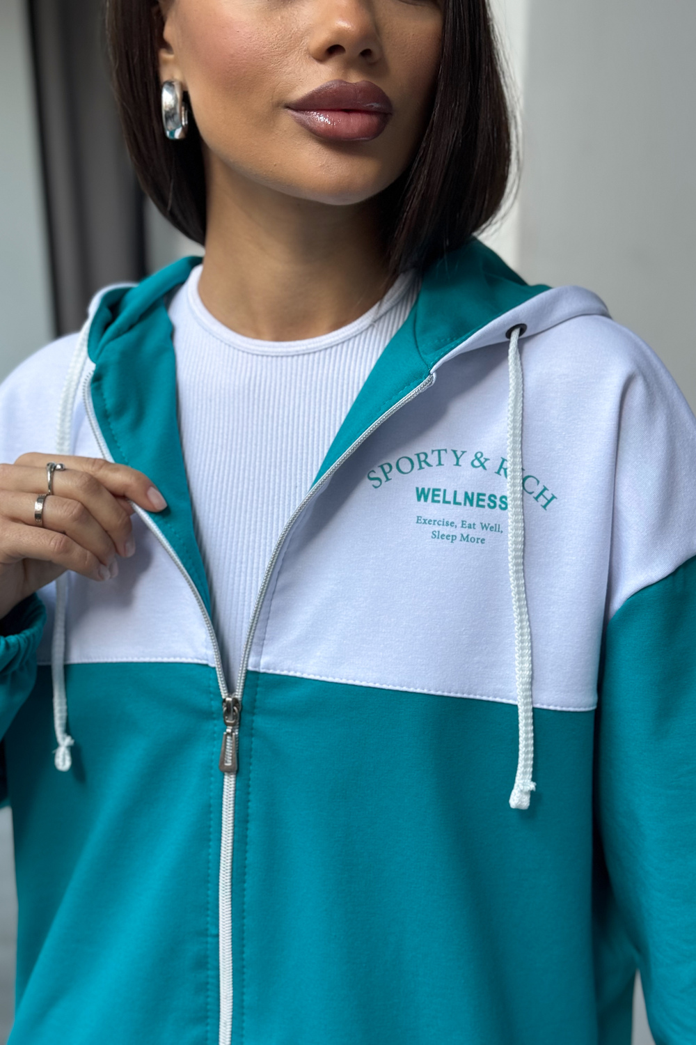 Женский спортивный костюм из трикотажа — идеальный выбор для тренировок, активных прогулок, дома или спортзала. Двойка состоит из худи на молнии с капюшоном и практичными брюками. Изделие выполнено из мягкого хлопка, что обеспечивает легкий и комфортный уход за вещью и удобство на каждый день.