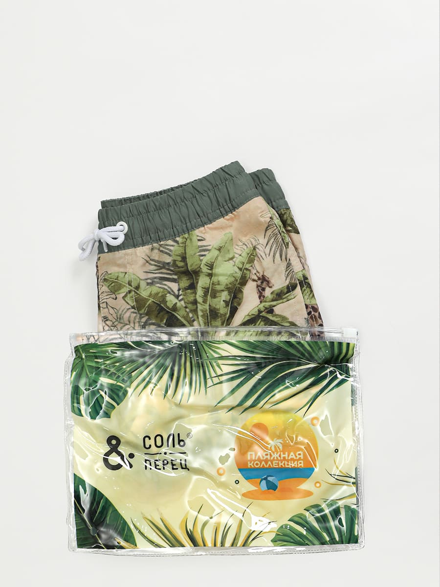 Шорты купальные Соль&Перец, с сеткой внутри, с карманами. По талии шорты на широкой, эластичной резинке со шнурком. Шорты выполнены из прочного материала, который не выгорает на солнце, быстро сохнет и не теряет своей первоначальной формы. Замечательный выбор для летнего отдыха.