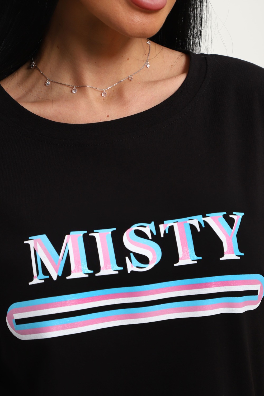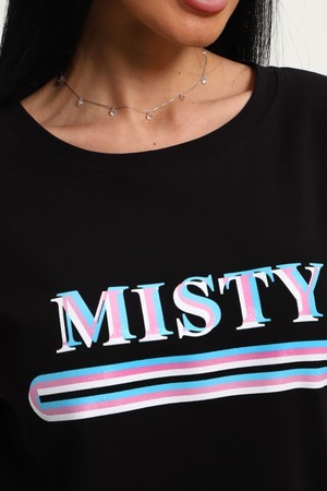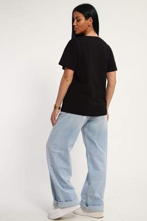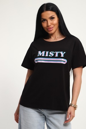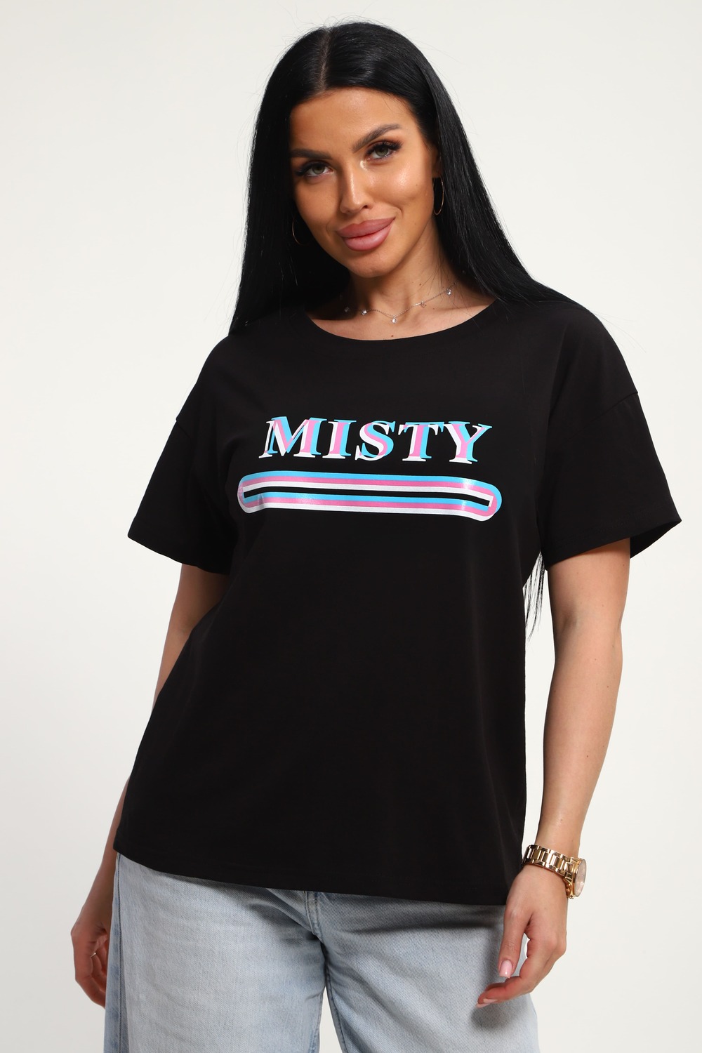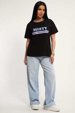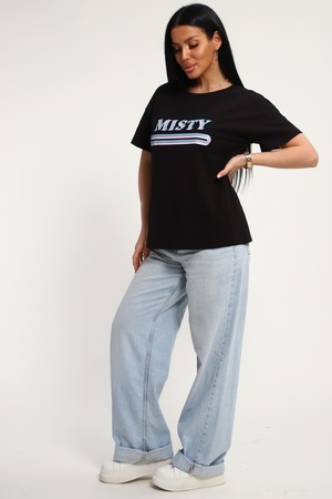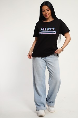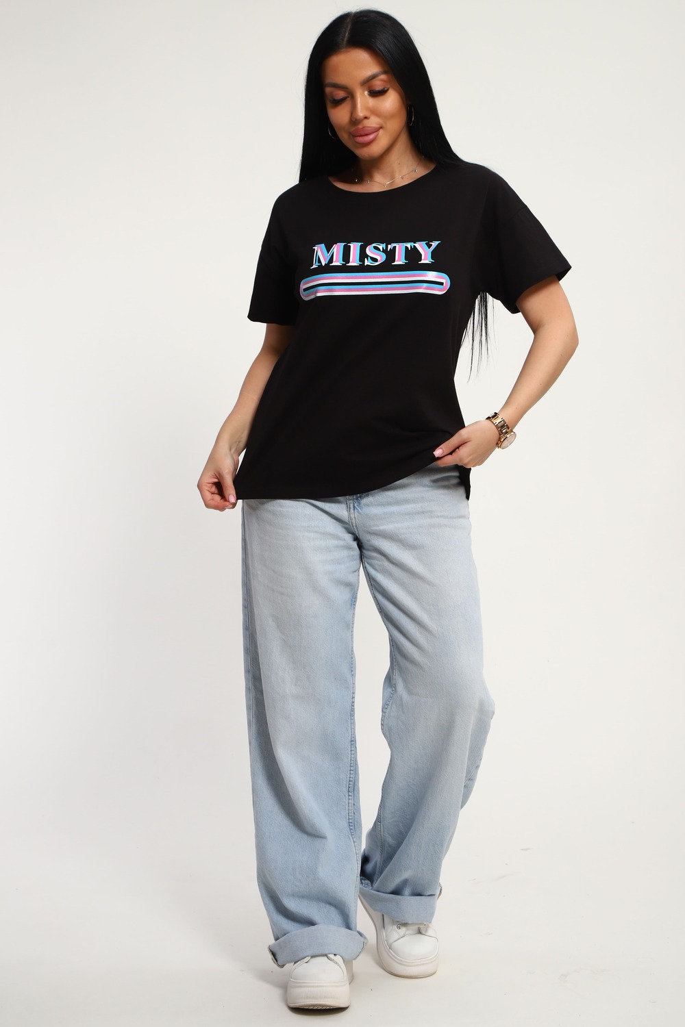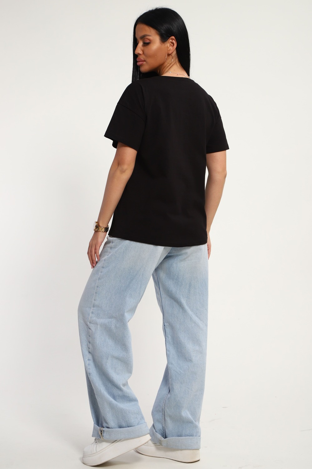 Футболка женская из гладкокрашенного трикотажа, хлопок 100%. Прямого силуэта, свободного облегания. горловина круглой формы. Рукав короткий. Низ изделия прямой. На полочке принт, шелкография.