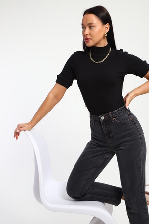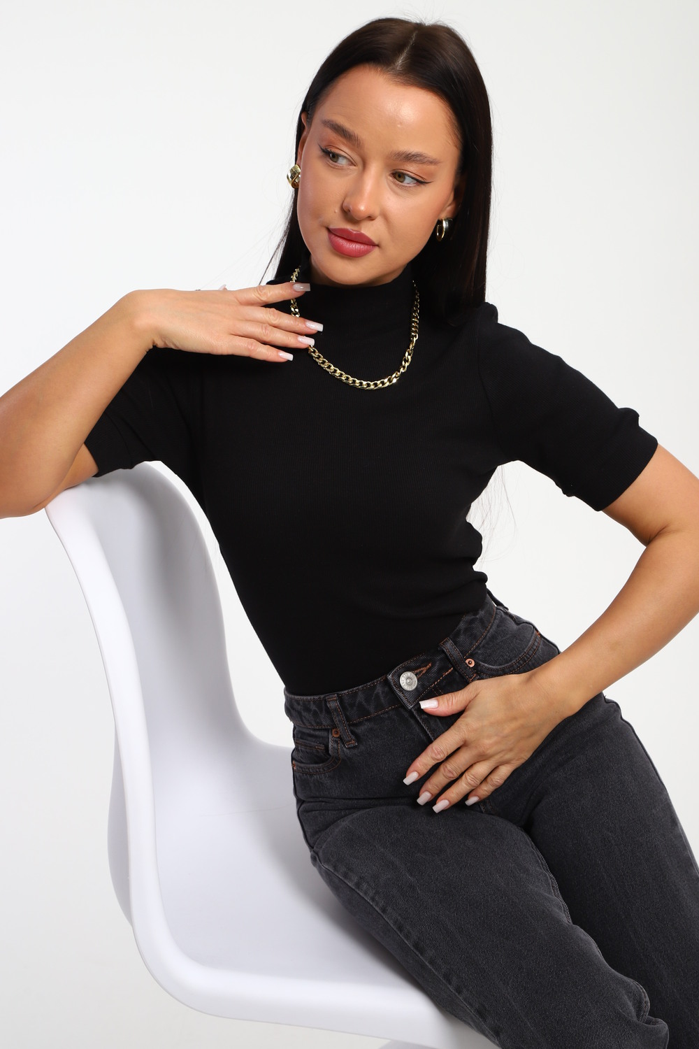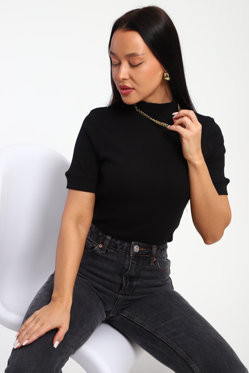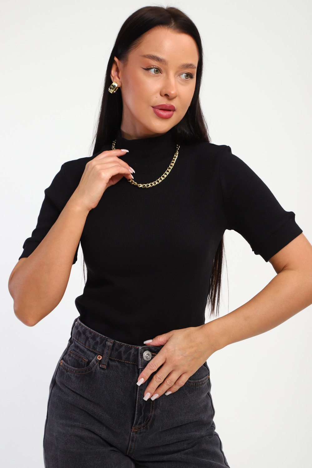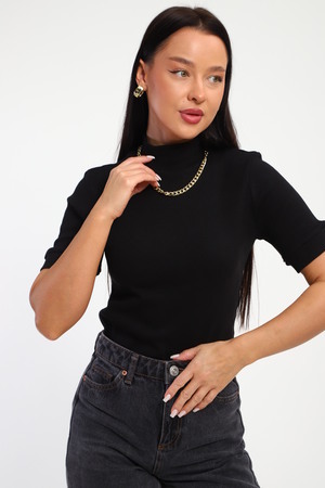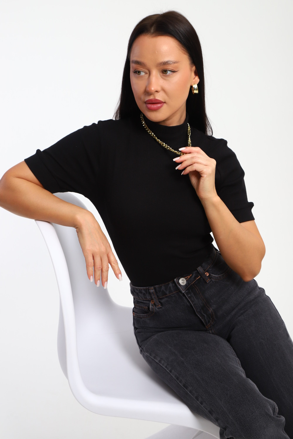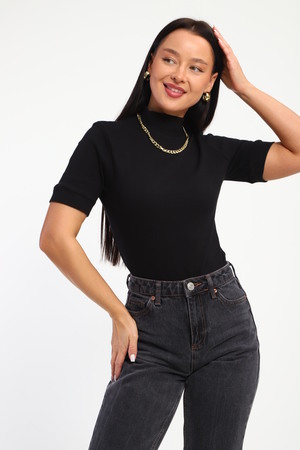Её тонкая и облегающая форма идеально подчеркивает силуэт, стильно смотрится на разных типах фигуры, а длинные рукава и высокое горло создают уютное тепло в холодные дни. Черный цвет делает ее универсальным базовым элементом, который легко сочетать с различными стилями.
