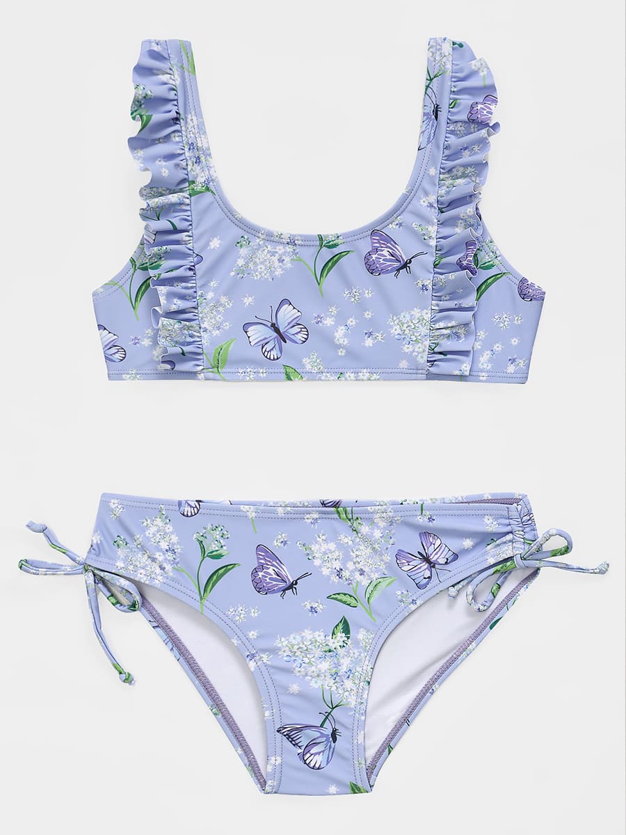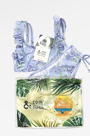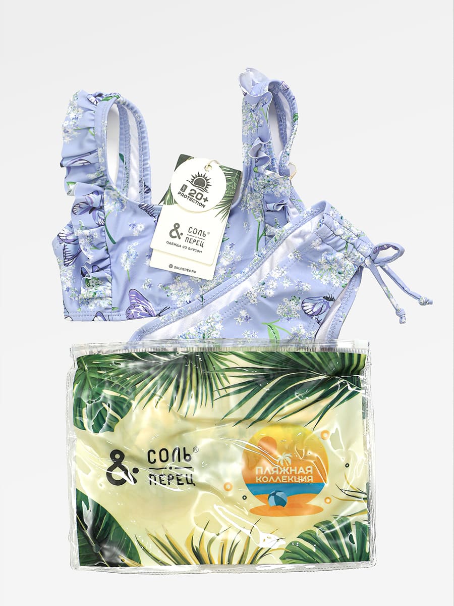 Купальник раздельный для девочки Соль&Перец. Выполнен из эластичного материала, не выгорает на солнце, быстро сохнет и не теряет своей первоначальной формы. Топ декорирован рюшами, плавки с завязками по бокам. Замечательный выбор для летнего отдыха.
