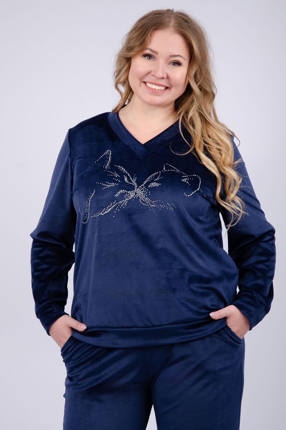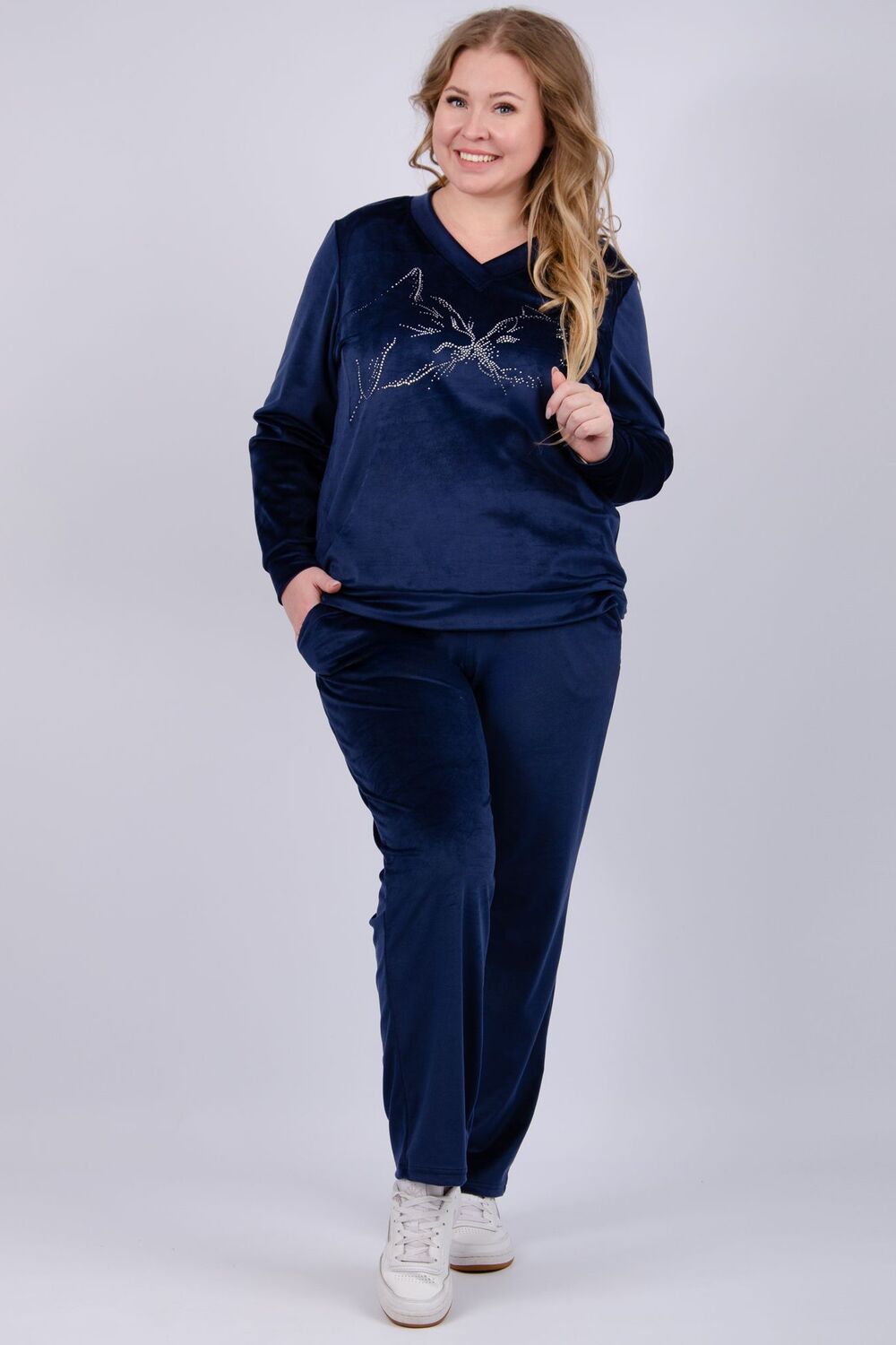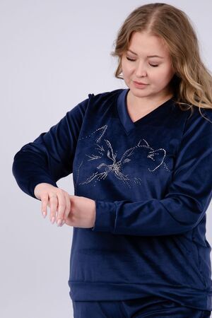 Женский велюровый костюм - это идеальное сочетание стиля, комфорта и практичности для повседневной жизни. Трикотажный комплект-двойка состоит из свитшота и брюк, которые будут отлично сочетаться с другими вещами из вашего гардероба. Высокая посадка и широкий размерный ряд, включая большие размеры, позволит подобрать комплект для разных типов фигур.