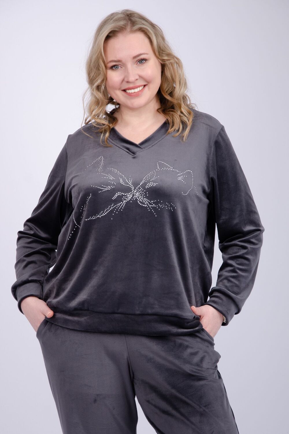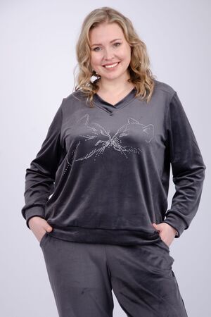 Женский велюровый костюм - это идеальное сочетание стиля, комфорта и практичности для повседневной жизни. Трикотажный комплект-двойка состоит из свитшота и брюк, которые будут отлично сочетаться с другими вещами из вашего гардероба. Высокая посадка и широкий размерный ряд, включая большие размеры, позволит подобрать комплект для разных типов фигур.