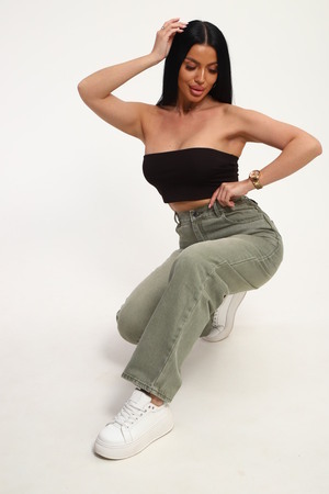 Женские джинсы на высокой посадке цвета хаки — стильное и универсальное решение для современного гардероба. Высокий пояс визуально удлиняет ноги и подчеркивает талию, а плотная, приятная к телу ткань обеспечивает комфорт на протяжении всего дня. Цвет хаки легко сочетается с разными элементами одежды, добавляя образу свежести и оригинальности. Эти джинсы отлично подходят для повседневных прогулок, работы или встреч с друзьями, сохраняя актуальность в любое время года.