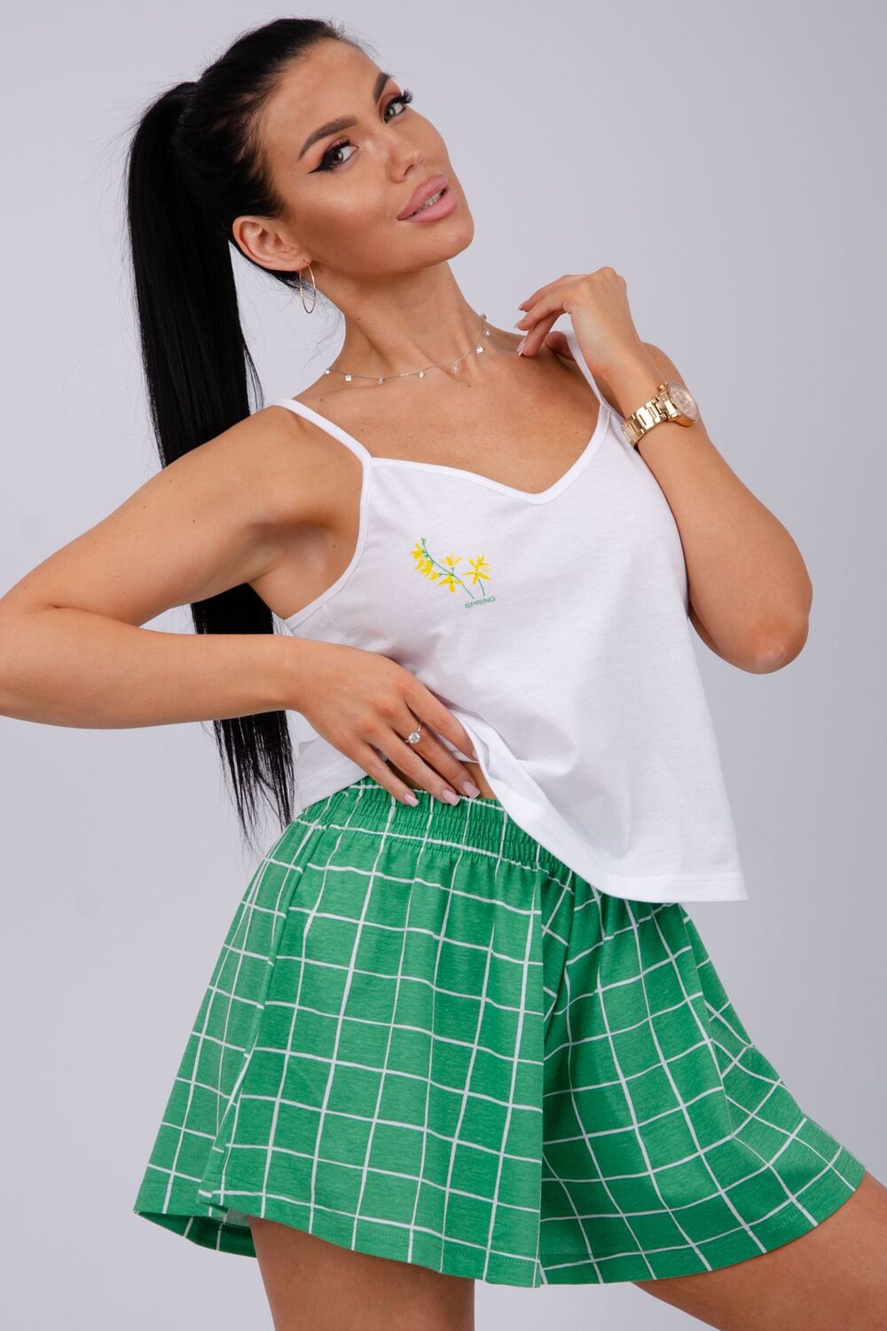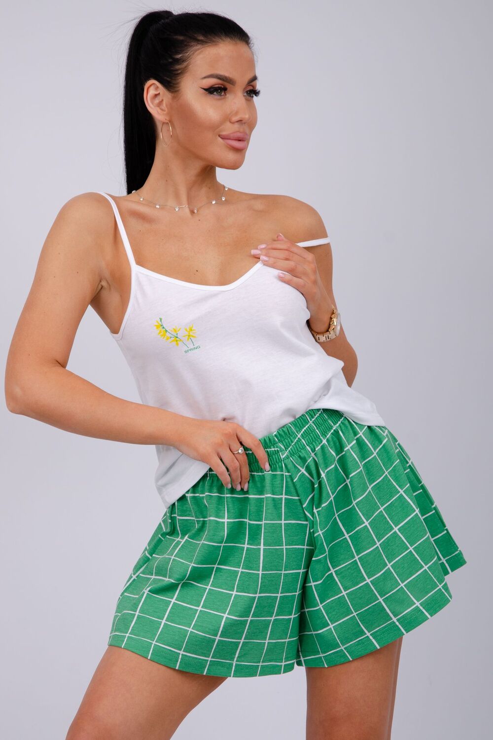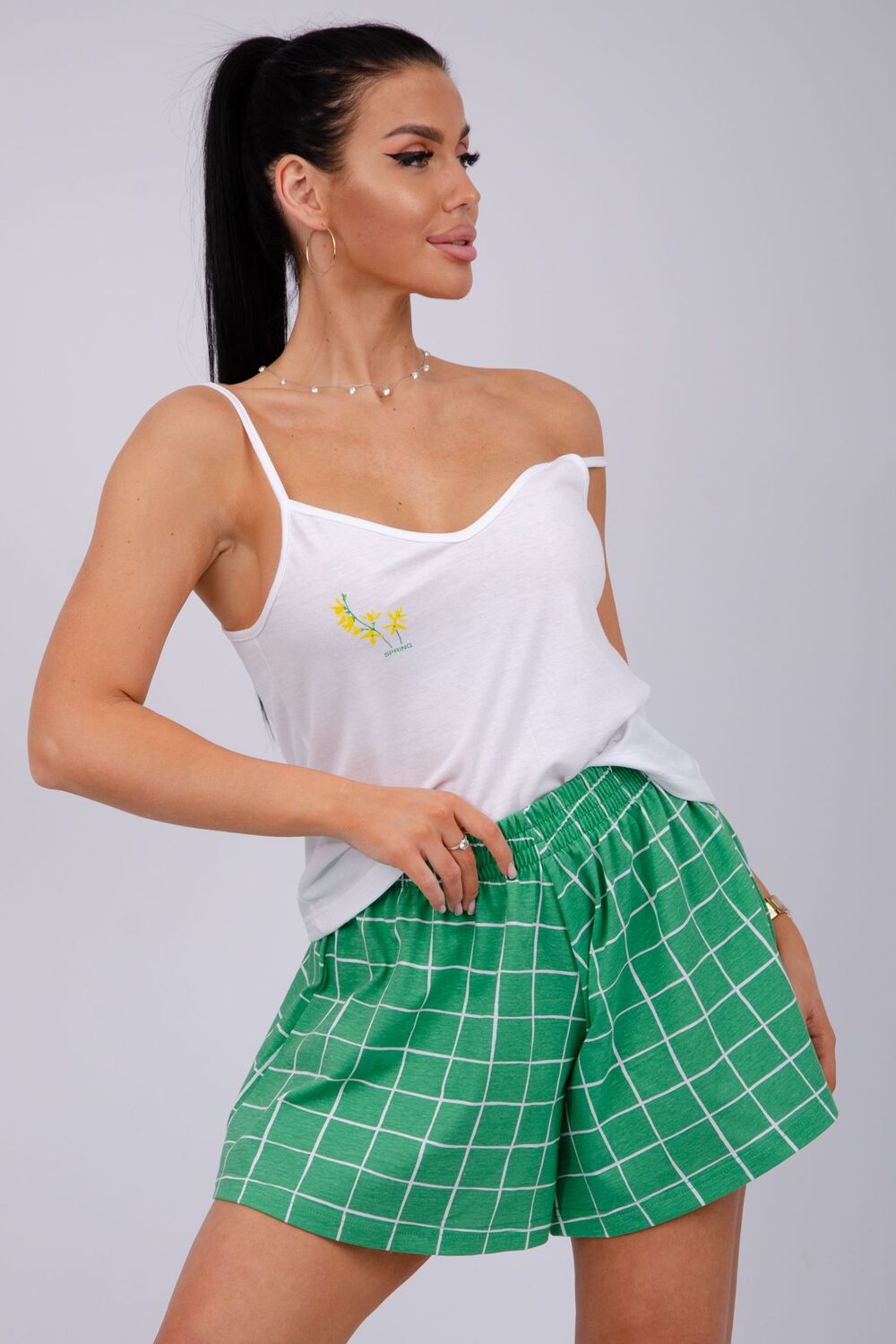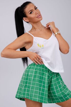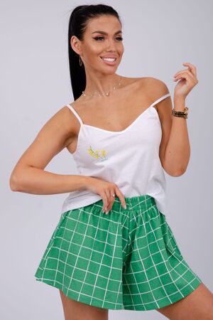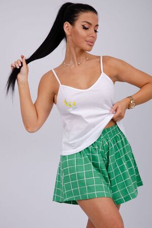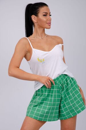 Эта женская пижама станет идеальным выбором для комфортного отдыха дома. Она сшита из мягкого, приятного на ощупь материала. Каждый элемент продуман для максимального удобства. Топ имеет аккуратный вырез, а шорты обеспечивают свободу движения.