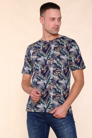 Мужская футболка с рисунком «Папоротник» (100% хлопок, набивная кулирка)