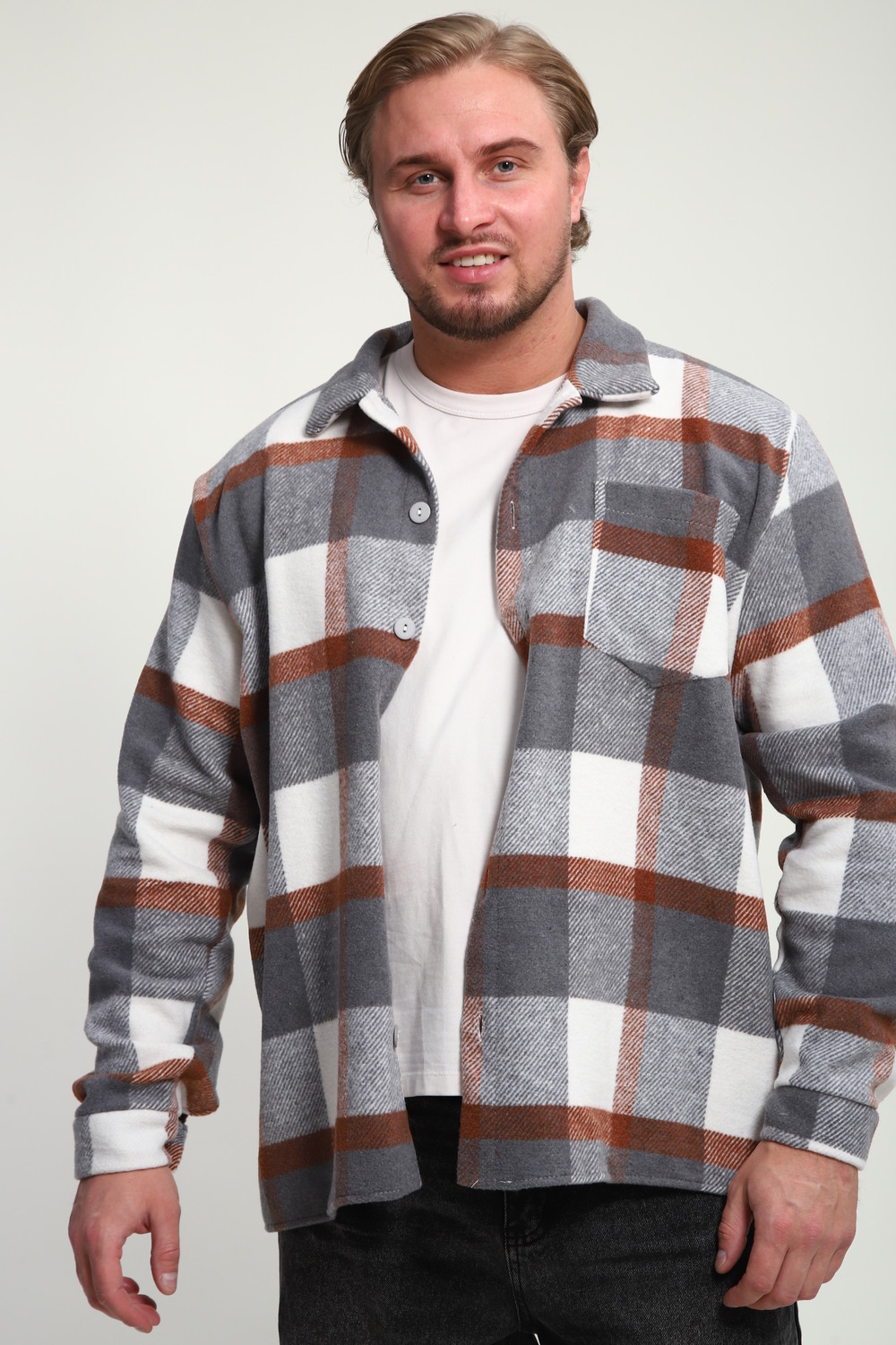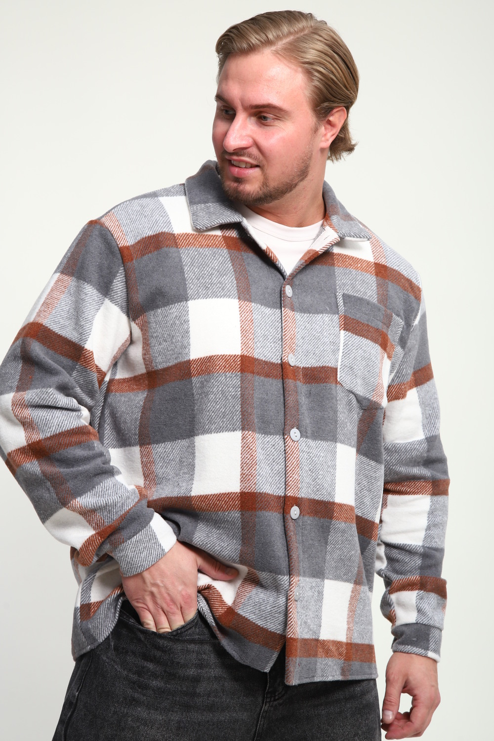 Представляем вам стильную и удобную мужскую рубашку в клетку оверсайз от бренда OMG – идеальный выбор для современного мужчины, который ценит комфорт и трендовые образы. Эта рубашка для мужчин утепленная станет незаменимой вещью в вашем гардеробе, будь то офис, прогулка с друзьями или пикник на природе.  Сделана из дышащего материала, она подарит вам комфорт в любую погоду.  Классический принт в клетку, длинные рукава и прямой крой создают универсальный и стильный образ.  Благодаря оверсайз силуэту рубашка отлично сядет на любой тип фигуры, а накладные карманы добавят практичности.
