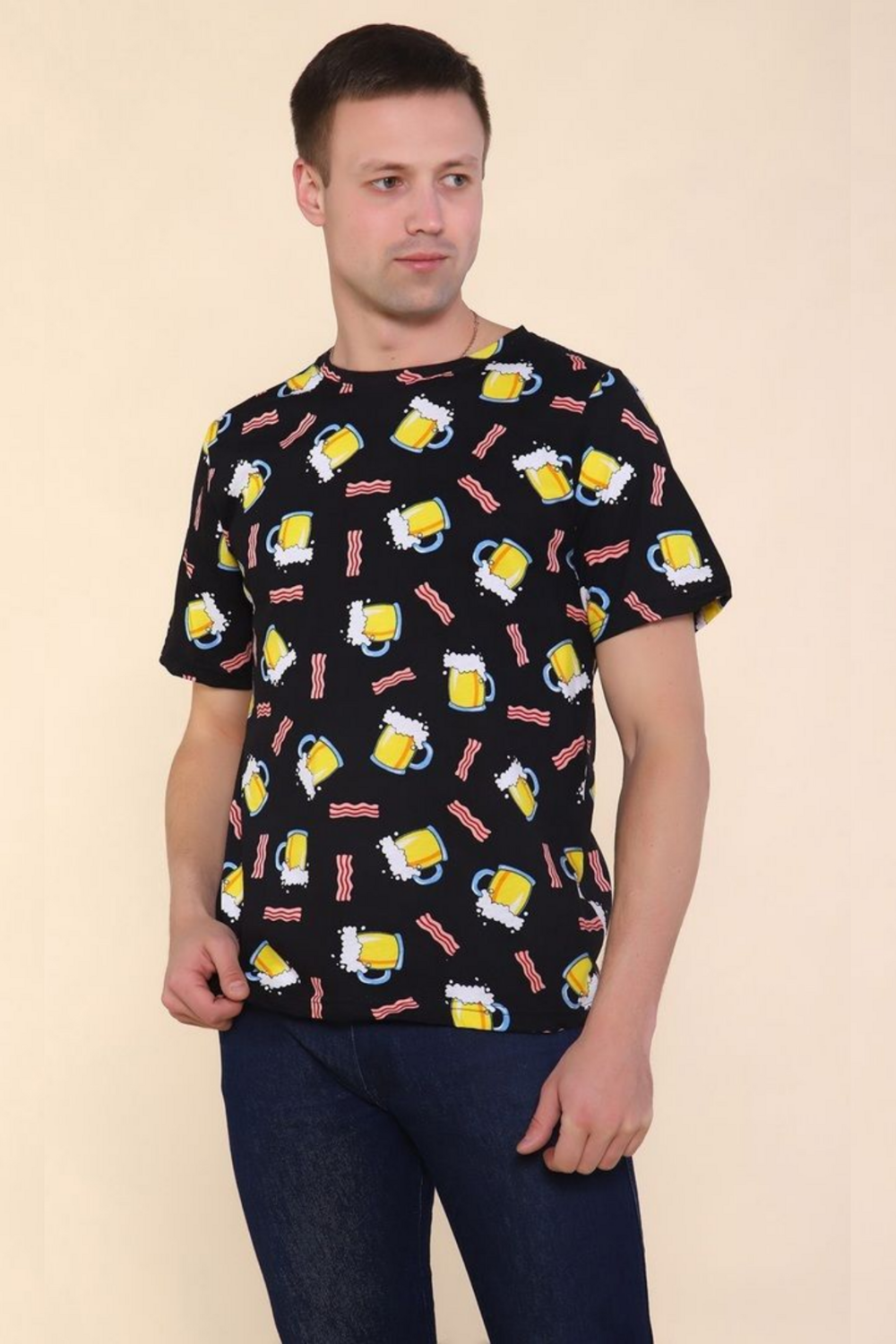 Мужская футболка с рисунком «Пиво» (100% хлопок, набивная кулирка)