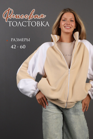 Стильный женский бомбер, который станет незаменимой частью вашего гардероба. Эта модная толстовка на молнии создана специально для тех, кто ценит комфорт и стиль в повседневной жизни. Изготовленная из высококачественного двухстороннего флиса антипиллинг 220 гр/м2, она идеально подходит для осеннего и зимнего сезона. Полиэстер обеспечивает мягкость и эластичность, что делает эту кофту невероятно комфортной в носке. Наш теплый бомбер доступен в больших размерах и выполнен в двухцветной гамме, что позволяет легко сочетать его с другими элементами вашего гардероба и подходит для студентов, школьников, а также полным и беременным девушкам. Это базовая вещь, которая станет отличным дополнением к вашему повседневному образу. Длинные рукава с резинками и удобными карманами добавляют практичности и функциональности, а оверсайз крой придаёт образу современный и расслабленный вид. Стильные кофты можно сочетать с любой одеждой, формируя различные образы. Благодаря свободному крою она подходит для беременных девушек. Эта демисезонная олимпийка идеально подходит для активного отдыха и спортивных мероприятий, а также для уютных домашних вечеров. Бомбер легко трансформируется из спортивного стиля в повседневный, позволяя вам оставаться модной в любой ситуации. Зипка на молнии обеспечивает удобство и быстроту в использовании, а также добавляет нотку динамичности в ваш образ. Кофта станет вашим надежным спутником в прохладные зимние дни, обеспечивая комфорт и стиль. Она идеально подходит для прогулок по городу, встреч с друзьями или занятий спортом. Не упустите возможность приобрести эту стильную кофту-бомбер, которая подчеркнёт вашу индивидуальность и добавит яркости в ваш повседневный образ. Оцените качество и комфорт, которые предлагает наша модная толстовка, и наслаждайтесь каждым моментом в ней.