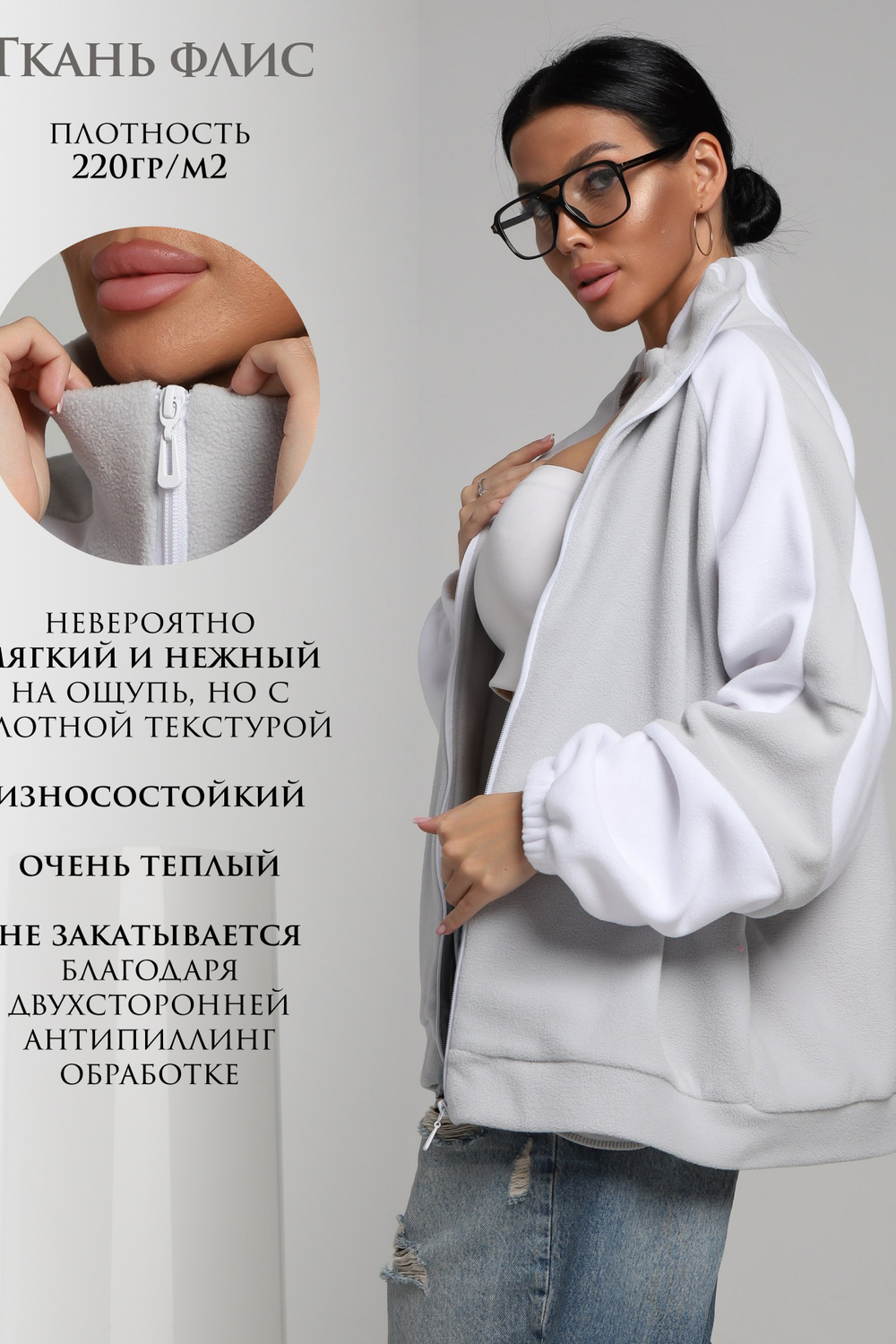 Стильный женский бомбер, который станет незаменимой частью вашего гардероба. Эта модная толстовка на молнии создана специально для тех, кто ценит комфорт и стиль в повседневной жизни. Изготовленная из высококачественного двухстороннего флиса антипиллинг 220 гр/м2, она идеально подходит для осеннего и зимнего сезона. Полиэстер обеспечивает мягкость и эластичность, что делает эту кофту невероятно комфортной в носке. Наш теплый бомбер доступен в больших размерах и выполнен в двухцветной гамме, что позволяет легко сочетать его с другими элементами вашего гардероба и подходит для студентов, школьников, а также полным и беременным девушкам. Это базовая вещь, которая станет отличным дополнением к вашему повседневному образу. Длинные рукава с резинками и удобными карманами добавляют практичности и функциональности, а оверсайз крой придаёт образу современный и расслабленный вид. Стильные кофты можно сочетать с любой одеждой, формируя различные образы. Благодаря свободному крою она подходит для беременных девушек. Эта демисезонная олимпийка идеально подходит для активного отдыха и спортивных мероприятий, а также для уютных домашних вечеров. Бомбер легко трансформируется из спортивного стиля в повседневный, позволяя вам оставаться модной в любой ситуации. Зипка на молнии обеспечивает удобство и быстроту в использовании, а также добавляет нотку динамичности в ваш образ. Кофта станет вашим надежным спутником в прохладные зимние дни, обеспечивая комфорт и стиль. Она идеально подходит для прогулок по городу, встреч с друзьями или занятий спортом. Не упустите возможность приобрести эту стильную кофту-бомбер, которая подчеркнёт вашу индивидуальность и добавит яркости в ваш повседневный образ. Оцените качество и комфорт, которые предлагает наша модная толстовка, и наслаждайтесь каждым моментом в ней.