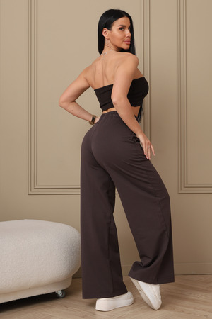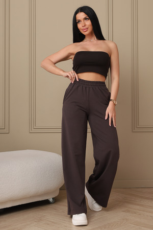 Широкие трикотажные брюки палаццо на резинке, идеальное сочетание комфорта и стиля. Брюки подходят для любого случая - от офиса до прогулок. Классический крой и однотонный цвет легко сочетаются с любым верхом. Высокая посадка подчеркивает талию и создает стройный силуэт. Свободный крой брюк палаццо обеспечивает максимальный комфорт и свободу движений. Ткань приятная к телу, хорошо тянется и не мнется. Сочетайте брюки палаццо с блузками, топами, футболками и свитерами.