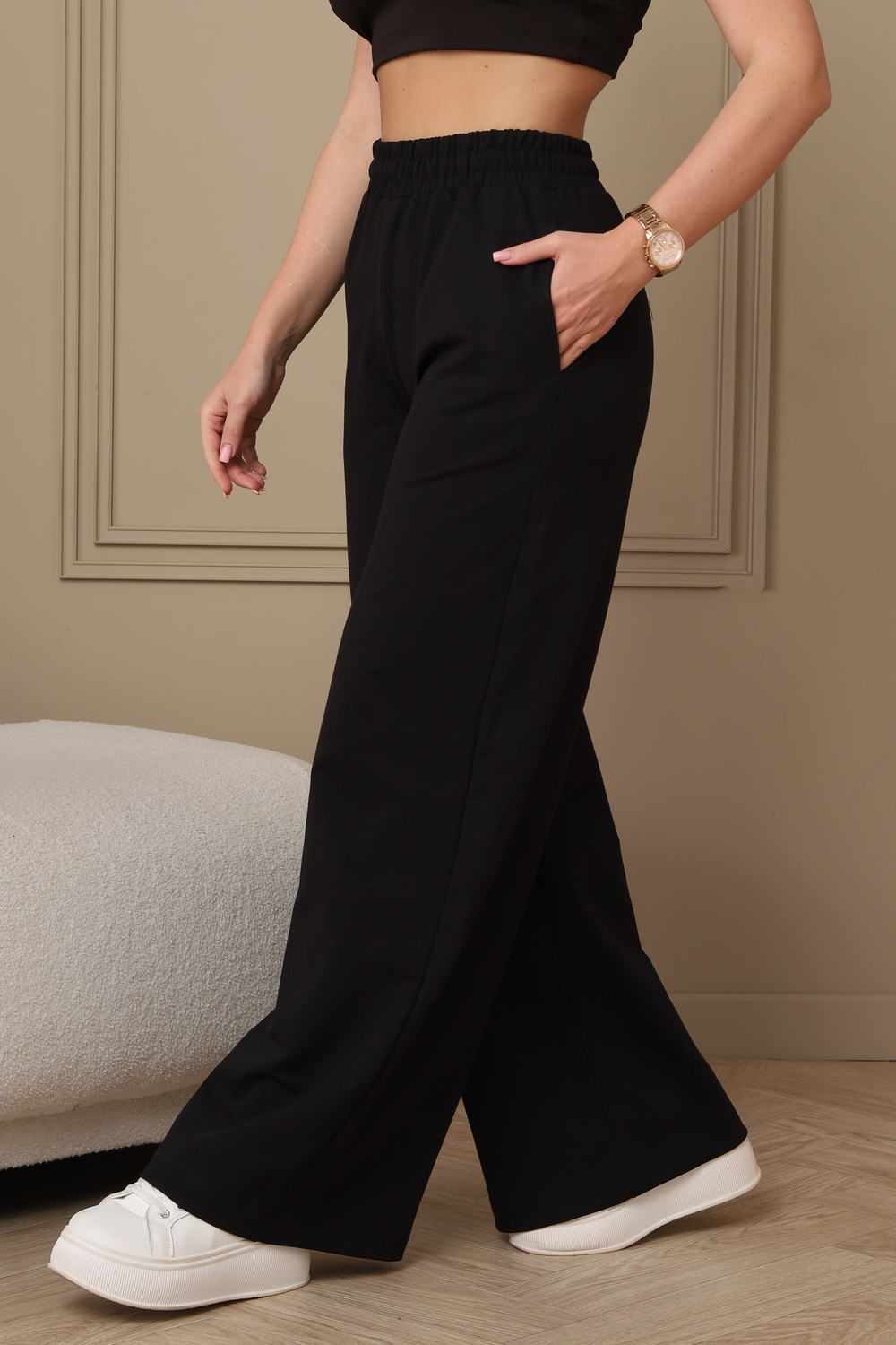Широкие трикотажные брюки палаццо на резинке, идеальное сочетание комфорта и стиля. Брюки подходят для любого случая - от офиса до прогулок. Классический крой и однотонный цвет легко сочетаются с любым верхом. Высокая посадка подчеркивает талию и создает стройный силуэт. Свободный крой брюк палаццо обеспечивает максимальный комфорт и свободу движений. Ткань приятная к телу, хорошо тянется и не мнется. Сочетайте брюки палаццо с блузками, топами, футболками и свитерами.