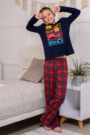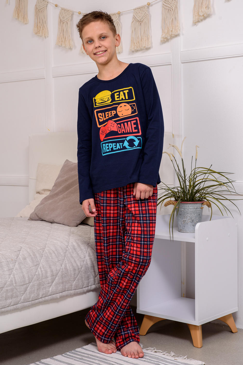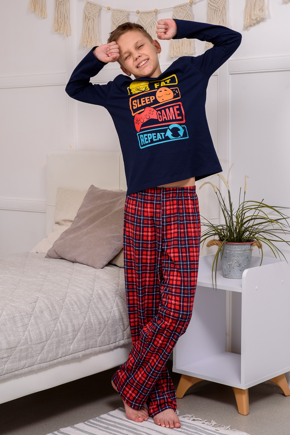 Пижама для мальчика от бренда SHKETOFF представляет собой комфортное и стильное решение для сна и отдыха. Эта модель выполнена в классическом стиле клетки, что делает её универсальной и подходящей для любого возраста. Брюки пижамы без карманов изготовлены из мягкого трикотажа , обеспечивающего хорошую вентиляцию и комфорт даже в жаркую погоду, ширина по талии регулируется резинкой . Лонгслив также выполнен из высококачественного трикотажа - кулирка хлопок, обеспечивающего хороший внешний вид и износостойкость. Комплект отличается высоким качеством изготовления и долговечностью, что делает её отличным выбором для повседневного использования. Этот наряд подчеркнет индивидуальность и стиль мальчика, сделав его ночь более приятной и комфортной.