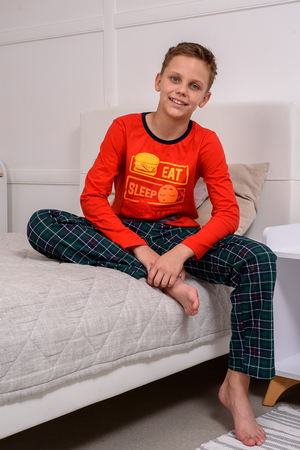 Пижама для мальчика от бренда SHKETOFF представляет собой комфортное и стильное решение для сна и отдыха. Эта модель выполнена в классическом стиле клетки, что делает её универсальной и подходящей для любого возраста. Брюки пижамы без карманов изготовлены из мягкого трикотажа , обеспечивающего хорошую вентиляцию и комфорт даже в жаркую погоду, ширина по талии регулируется резинкой . Лонгслив также выполнен из высококачественного трикотажа - кулирка хлопок, обеспечивающего хороший внешний вид и износостойкость. Комплект отличается высоким качеством изготовления и долговечностью, что делает её отличным выбором для повседневного использования. Этот наряд подчеркнет индивидуальность и стиль мальчика, сделав его ночь более приятной и комфортной.