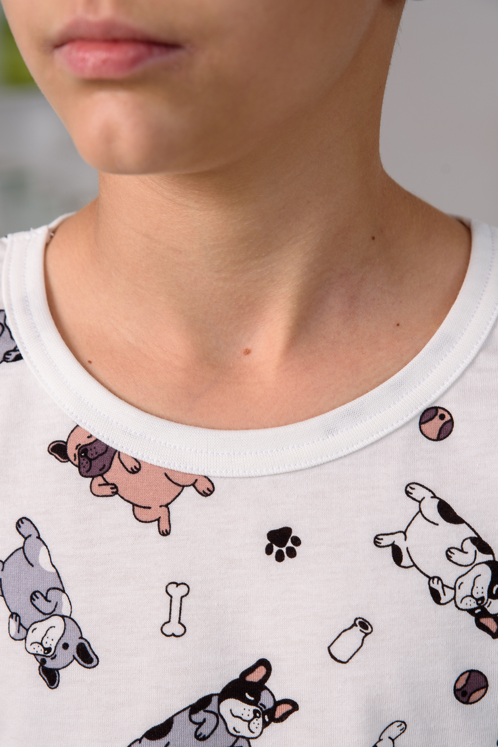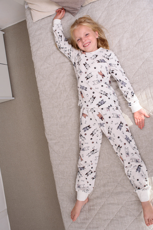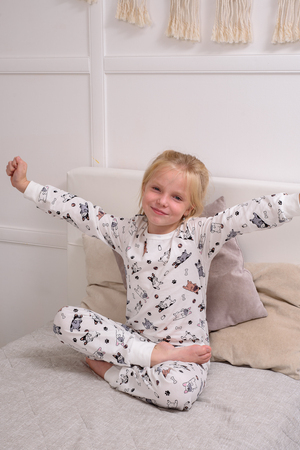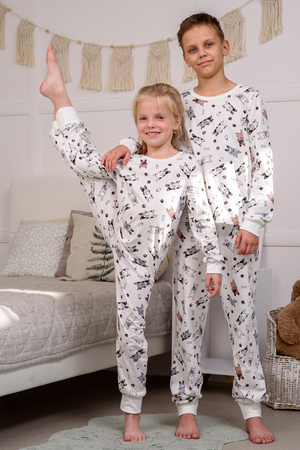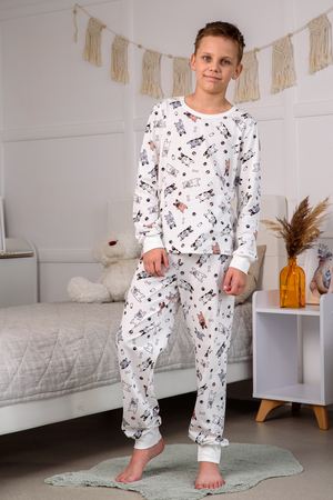 Пижама детская с принтом от бренда SHKETOFF представляет собой комфортное и стильное решение для сна и отдыха. Модель выполнена в классическом стиле , что делает её универсальной и подходящей для любого возраста. Пижама изготовлена из мягкого хлопкового трикотажа, обеспечивающего хорошую вентиляцию и комфорт даже в жаркую погоду. Комплект состоит из брюк на манжетах и кофты с длинным рукавом на манжете. Горловина обработана эластичной тесьмой, что позволяет легко надевать ее через голову. Комплект для дома отличается высоким качеством изготовления и долговечностью, что делает её отличным выбором для повседневного использования. Пижаму со штанами свободного кроя можно использовать как домашний костюм.
