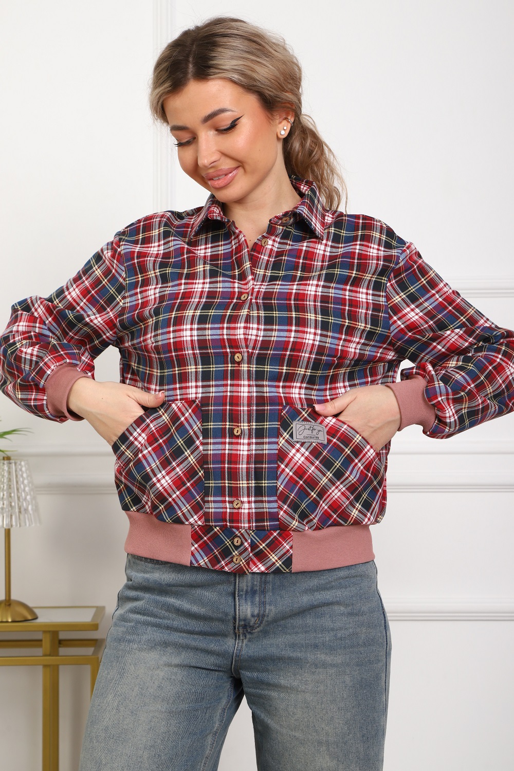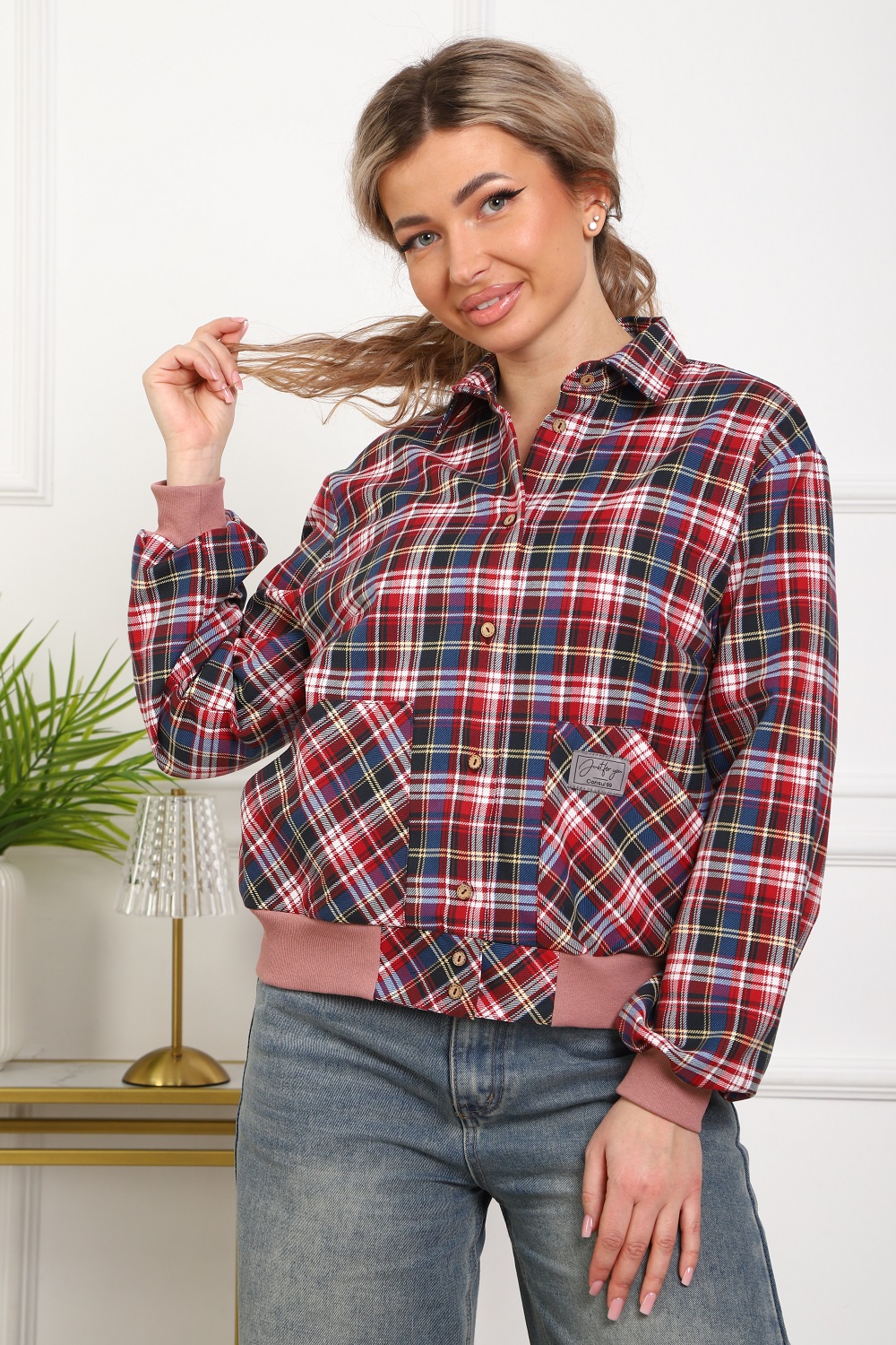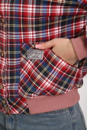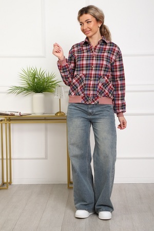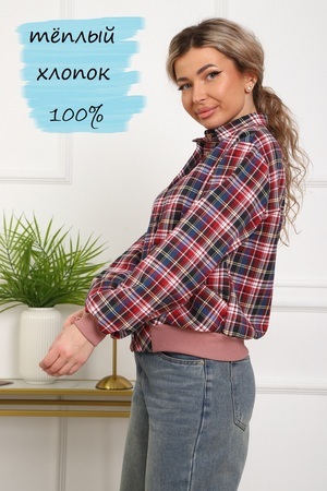 Рубашка женская кроя "бомбер" из тёплого хлопка (ткань - фуле, хлопок 100%). Длинный рукав на манжете, манжеты и пояс из трикотажа. Два удобных кармана, в которые помещается смартфон. Для сохранения эластичности трикотажа стирать рубашку рекомендуется в мешке для стирки. Ткань легко утюжится, относительно износостойкая, долго сохраняет презентабельный вид.