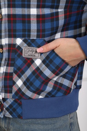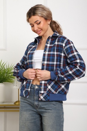 Рубашка женская кроя "бомбер" из тёплого хлопка (ткань - фуле, хлопок 100%). Длинный рукав на манжете, манжеты и пояс из трикотажа. Два удобных кармана, в которые помещается смартфон. Для сохранения эластичности трикотажа стирать рубашку рекомендуется в мешке для стирки. Ткань легко утюжится, относительно износостойкая, долго сохраняет презентабельный вид.