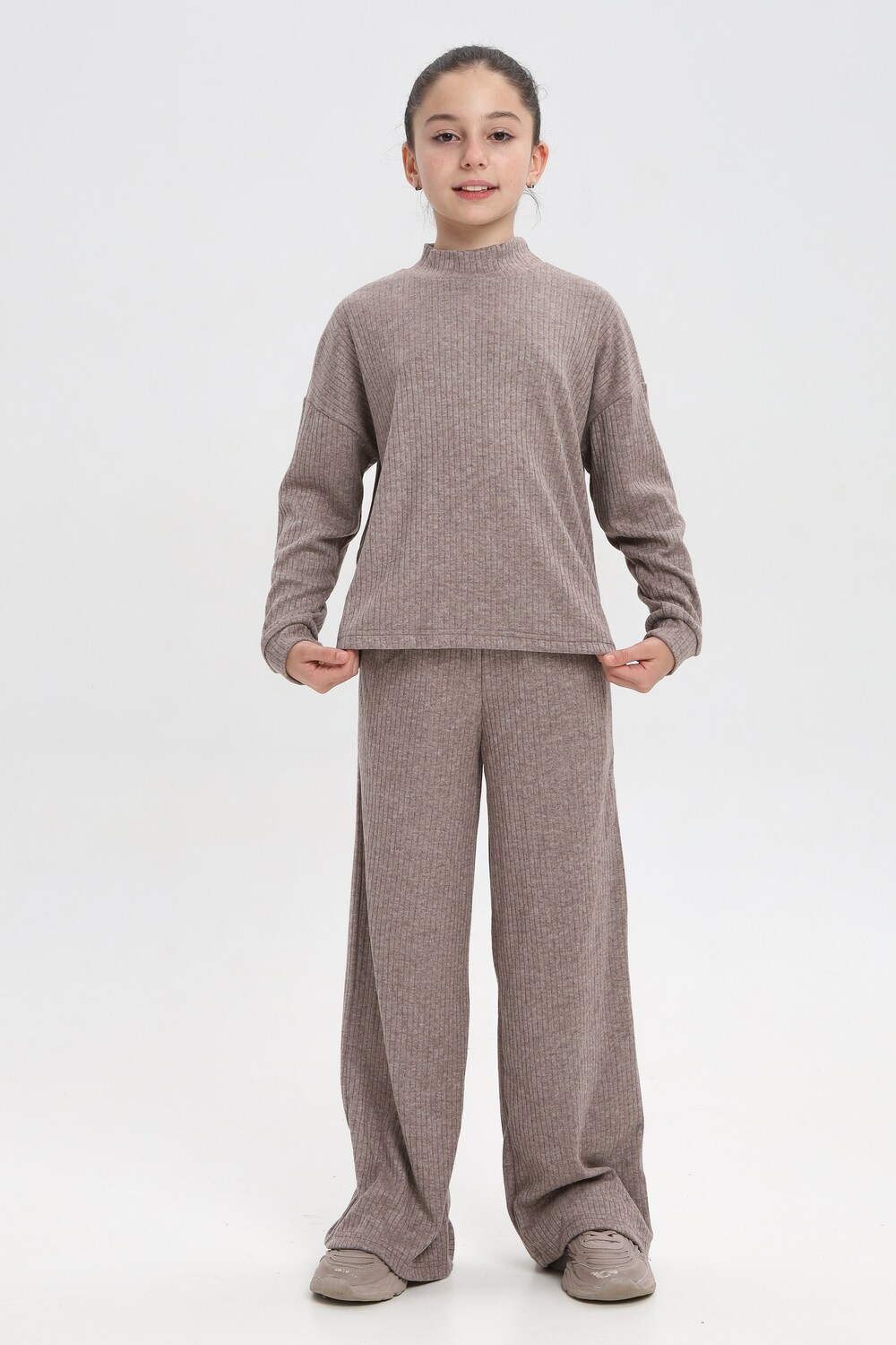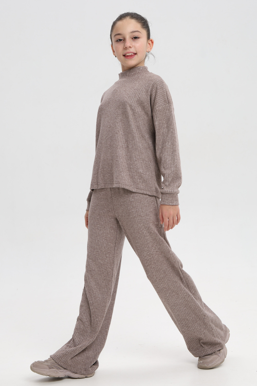 Классный детский костюм из нежной , плотной, теплой лапши ангоры. Водолазка джемпер с длинным рукавом ,брюки палаццо, с карманами.