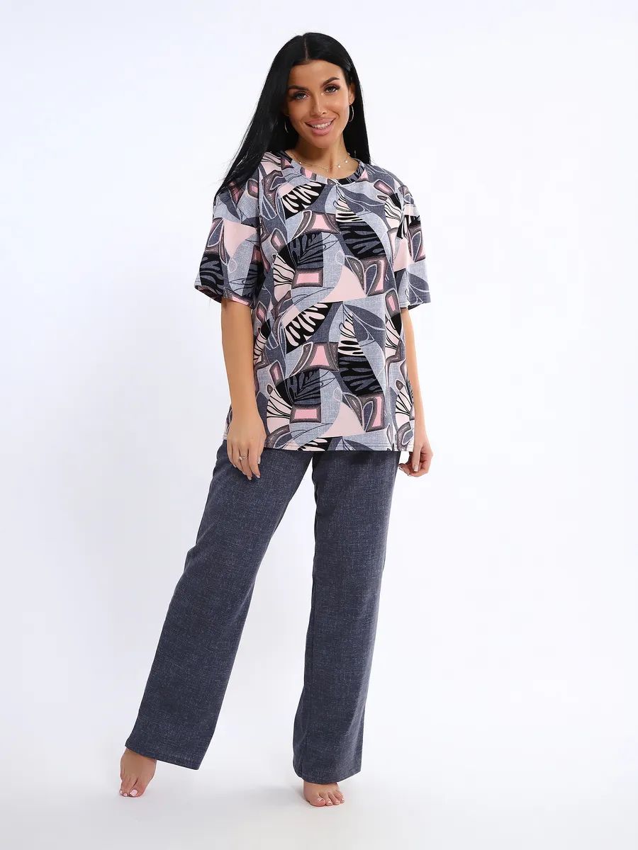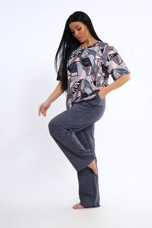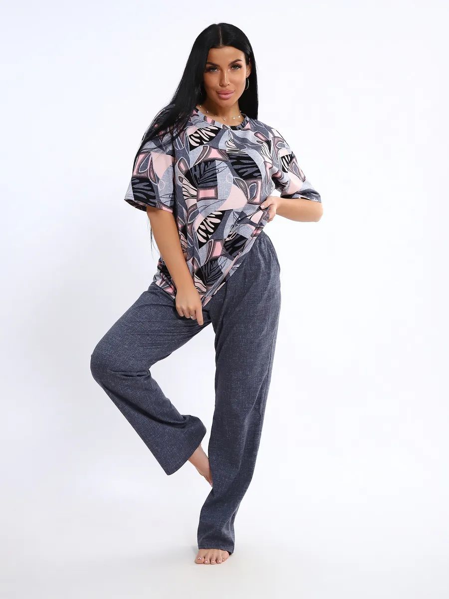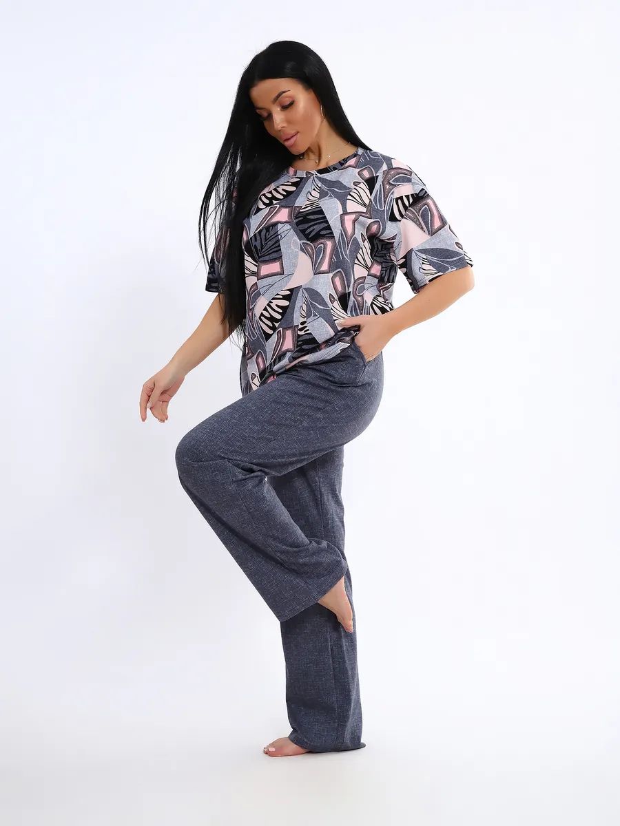Женская пижама со штанами – идеальный вариант для комфортного отдыха дома. Этот домашний костюм выполнен из мягкого трикотажного хлопка, что обеспечивает приятные ощущения при носке. Пижамка состоит из футболки с коротким рукавом и легких штанов с карманами, которые свободно облегают тело, не сковывая движений. Хлопковая ткань позволяет коже дышать, что особенно важно в жаркую погоду, обеспечивая свежесть и комфорт во время сна.