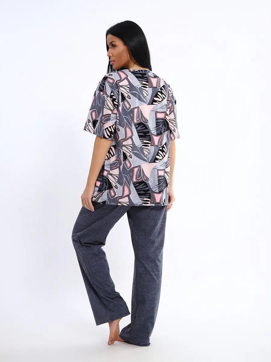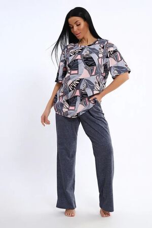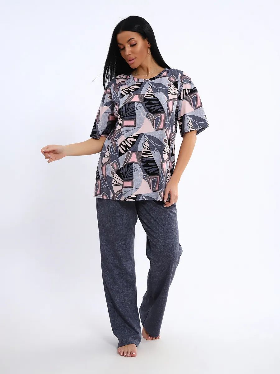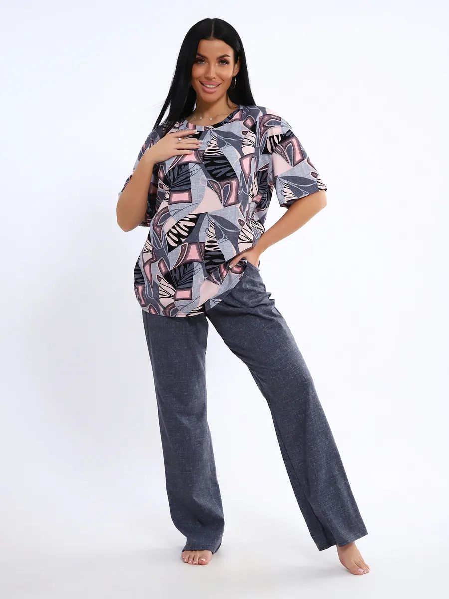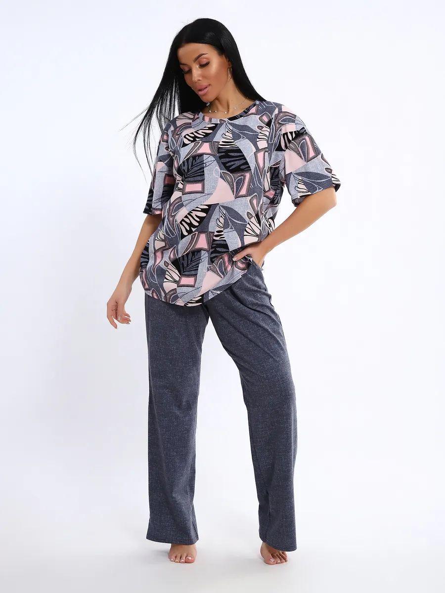 Женская пижама со штанами – идеальный вариант для комфортного отдыха дома. Этот домашний костюм выполнен из мягкого трикотажного хлопка, что обеспечивает приятные ощущения при носке. Пижамка состоит из футболки с коротким рукавом и легких штанов с карманами, которые свободно облегают тело, не сковывая движений. Хлопковая ткань позволяет коже дышать, что особенно важно в жаркую погоду, обеспечивая свежесть и комфорт во время сна.