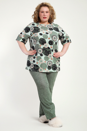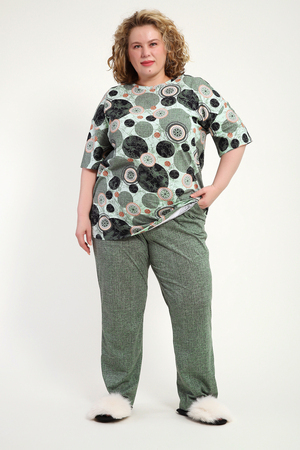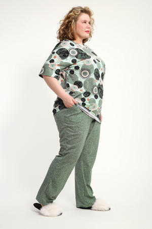 Женская пижама со штанами – идеальный вариант для комфортного отдыха дома. Этот домашний костюм выполнен из мягкого трикотажного хлопка, что обеспечивает приятные ощущения при носке. Пижамка состоит из футболки с коротким рукавом и легких штанов с карманами, которые свободно облегают тело, не сковывая движений. Хлопковая ткань позволяет коже дышать, что особенно важно в жаркую погоду, обеспечивая свежесть и комфорт во время сна.