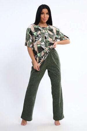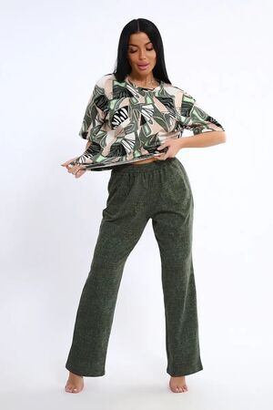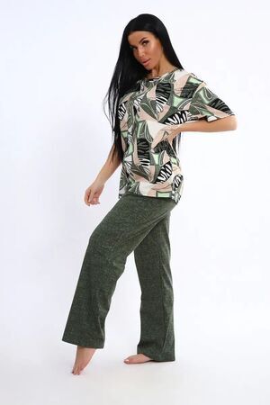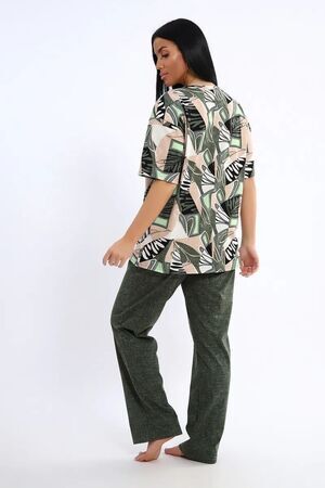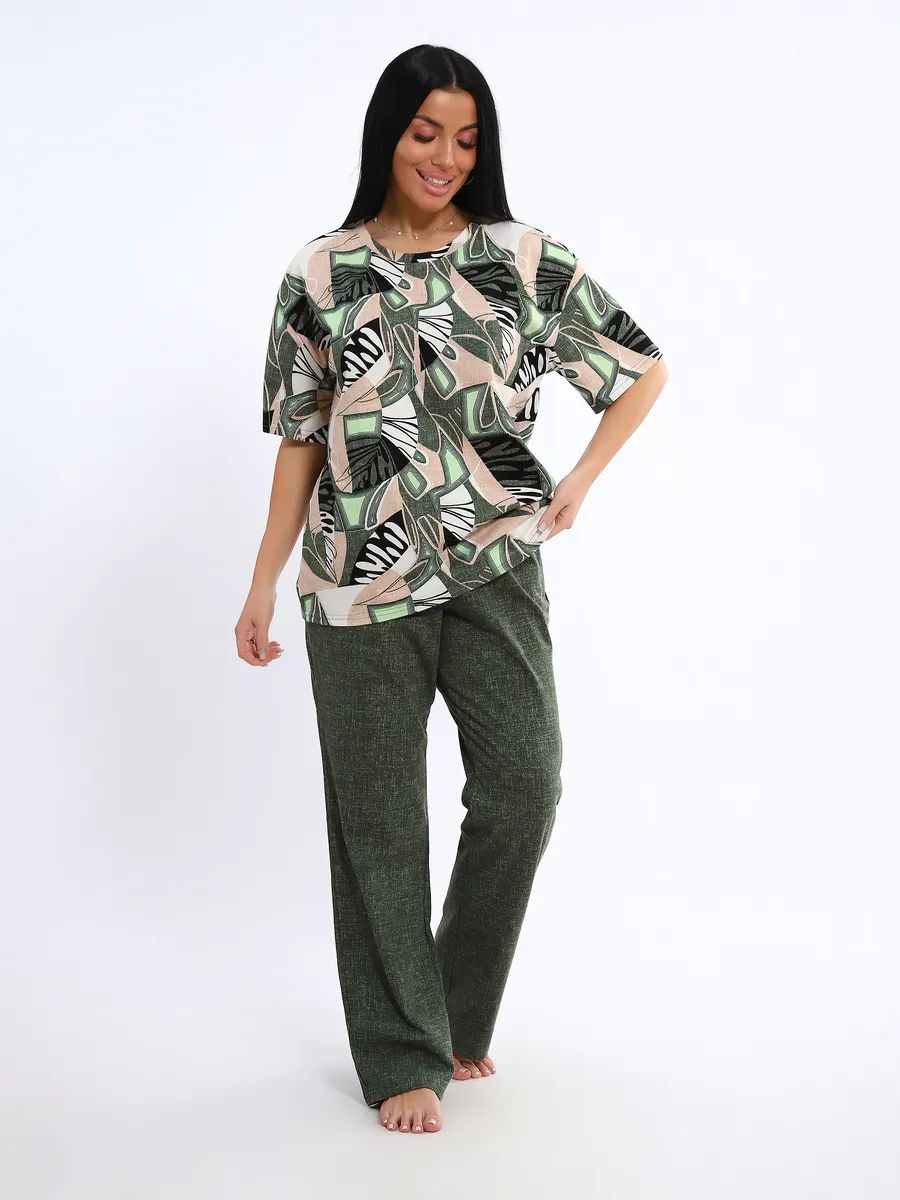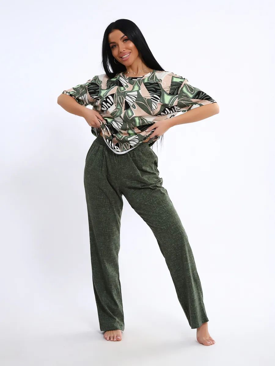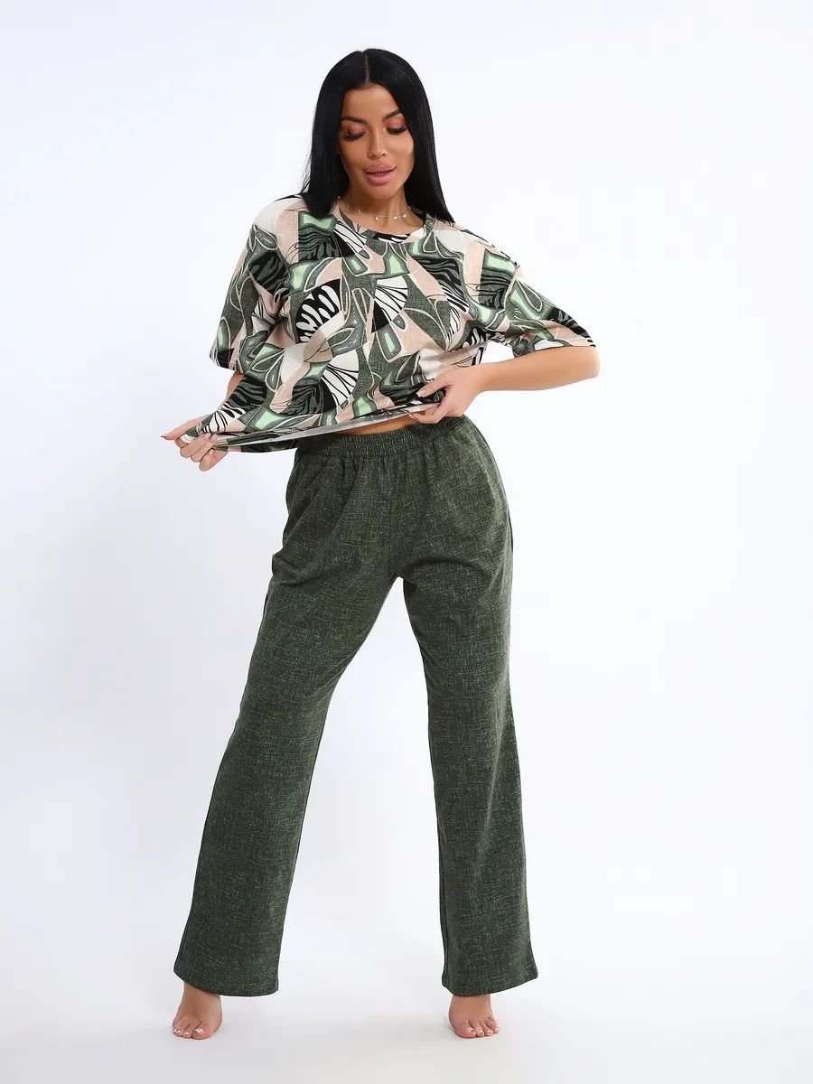 Женская пижама со штанами  – идеальный вариант для комфортного отдыха дома. Этот домашний костюм выполнен из мягкого трикотажного хлопка, что обеспечивает приятные ощущения при носке. Пижамка состоит из футболки с коротким рукавом и легких штанов с карманами, которые свободно облегают тело, не сковывая движений. Хлопковая ткань позволяет коже дышать, что особенно важно в жаркую погоду, обеспечивая свежесть и комфорт во время сна.