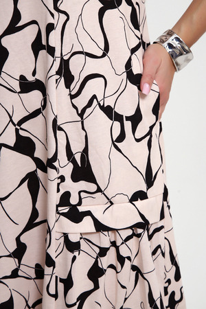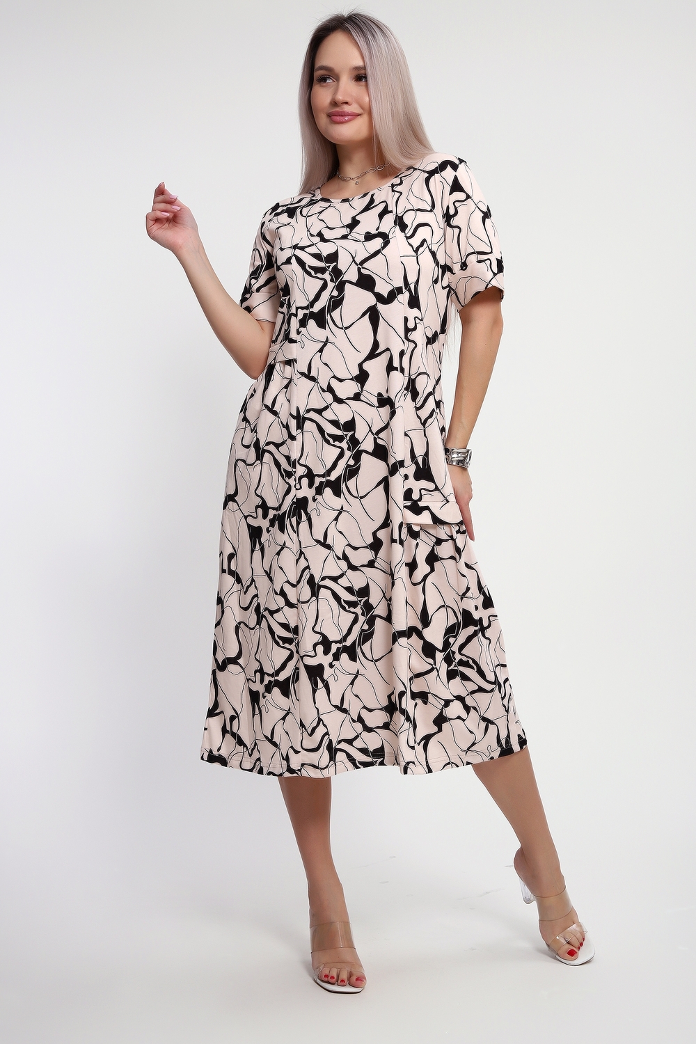 Платье женское свободного силуэта выполнено из 100% хлопка. Платье с коротким рукавом, с карманами в боках, спереди оригинальные ассиметричные планки. Изделие идеально подойдет как для дома, так и для прогулок и отдыха.