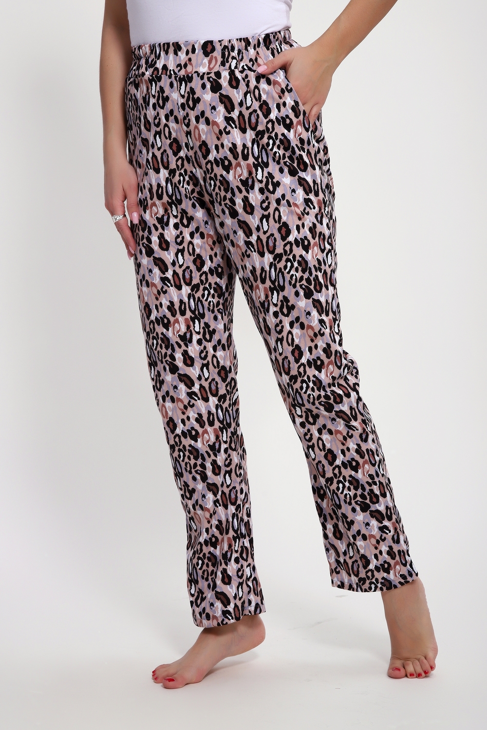 Брюки женские выполнены из кулирки 100% хлопок. Брюки имеют комфортную посадку, на поясе с резинкой, с карманами, прямые. Идеально подойдут как для дома, так и для прогулок и отдыха.