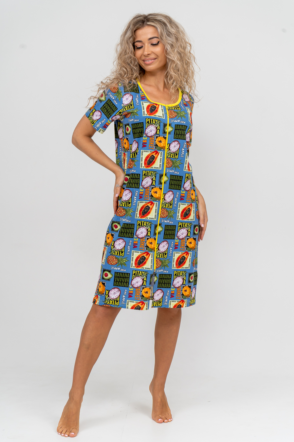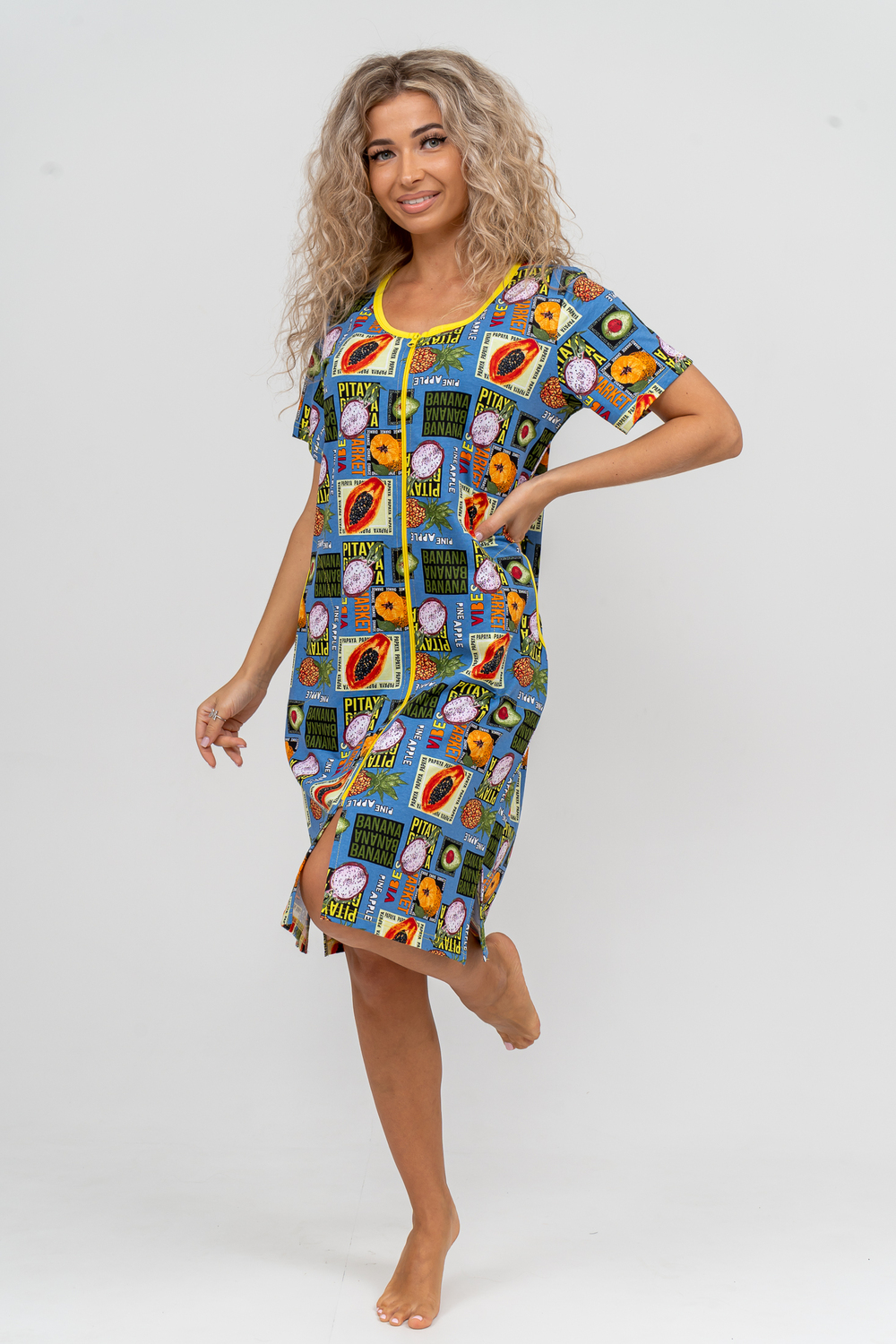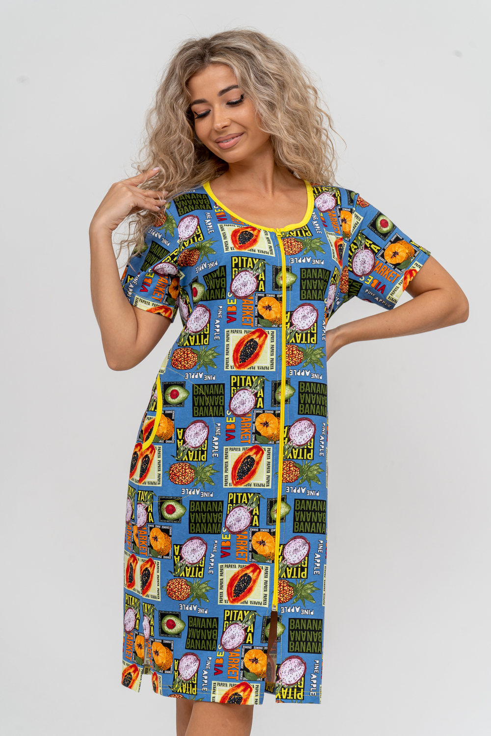 Модный женственный халатик выполнен из 100% хлопчатобумажной ткани, что обеспечивает максимальный комфорт при ношении. Отличается мягкостью и приятной на ощупь текстурой. Материал прекрасно дышит. Носить такой халатик Вы сможете как летом, так и в любой другой сезон. Надёжный замок на молнии сохраняет свои свойства в течении всего времени использования. Женственный вырез и 2 боковых кармана добавляют образу шарм и делают изделие удобным и практичным. Изысканный халатик подойдёт для любого типа фигуры. Отличная модель для дома, для роддома, после родов, для кухонных дел и хозяйственной уборки, для дачи. И конечно идеально после душа, сауны, бани и ванной. А так же будет замечательным подарком на любой праздник: 14 февраля, день рождения, 8 марта. Рекомендуется стирать в деликатном режиме 30 °С. Это поможет избежать деформации и сохранить яркость цвета.