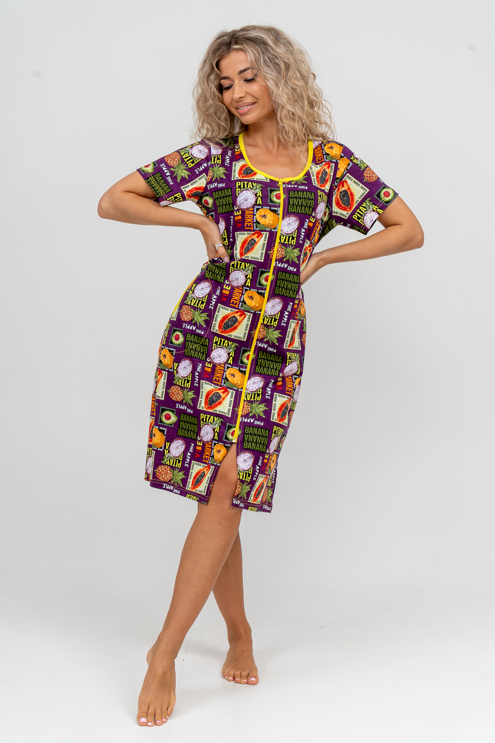 Модный женственный халатик выполнен из 100% хлопчатобумажной ткани, что обеспечивает максимальный комфорт при ношении. Отличается мягкостью и приятной на ощупь текстурой. Материал прекрасно дышит. Носить такой халатик Вы сможете как летом, так и в любой другой сезон. Надёжный замок на молнии сохраняет свои свойства в течении всего времени использования. Женственный вырез и 2 боковых кармана добавляют образу шарм и делают изделие удобным и практичным. Изысканный халатик подойдёт для любого типа фигуры. Отличная модель для дома, для роддома, после родов, для кухонных дел и хозяйственной уборки, для дачи. И конечно идеально после душа, сауны, бани и ванной. А так же будет замечательным подарком на любой праздник: 14 февраля, день рождения, 8 марта. Рекомендуется стирать в деликатном режиме 30 °С. Это поможет избежать деформации и сохранить яркость цвета.