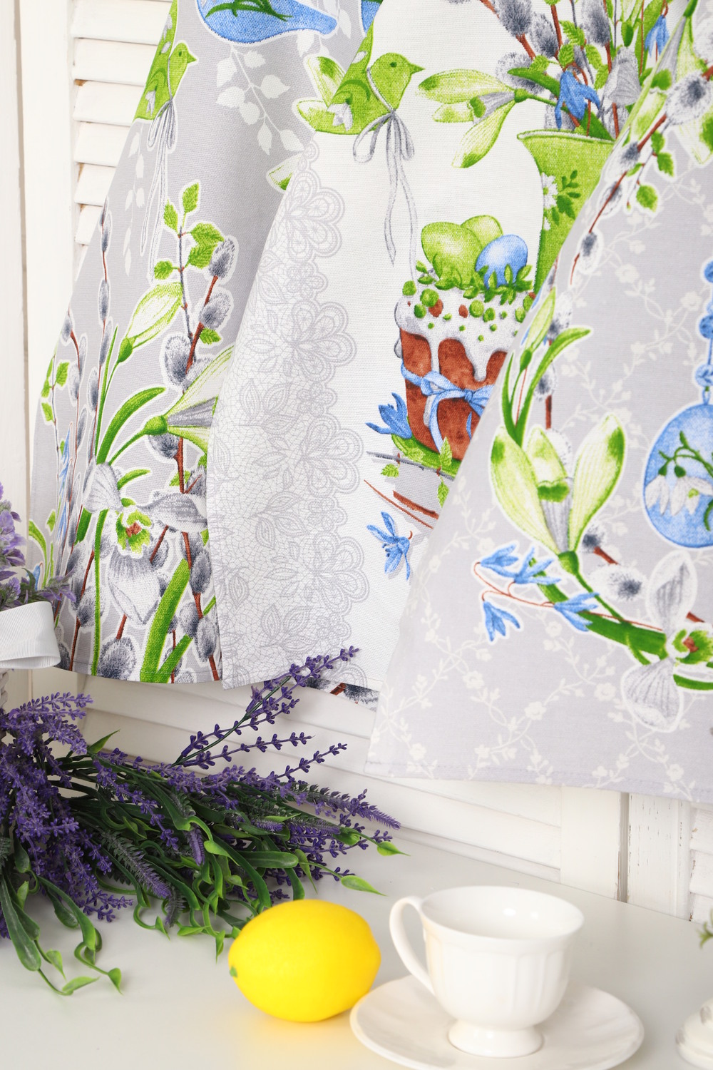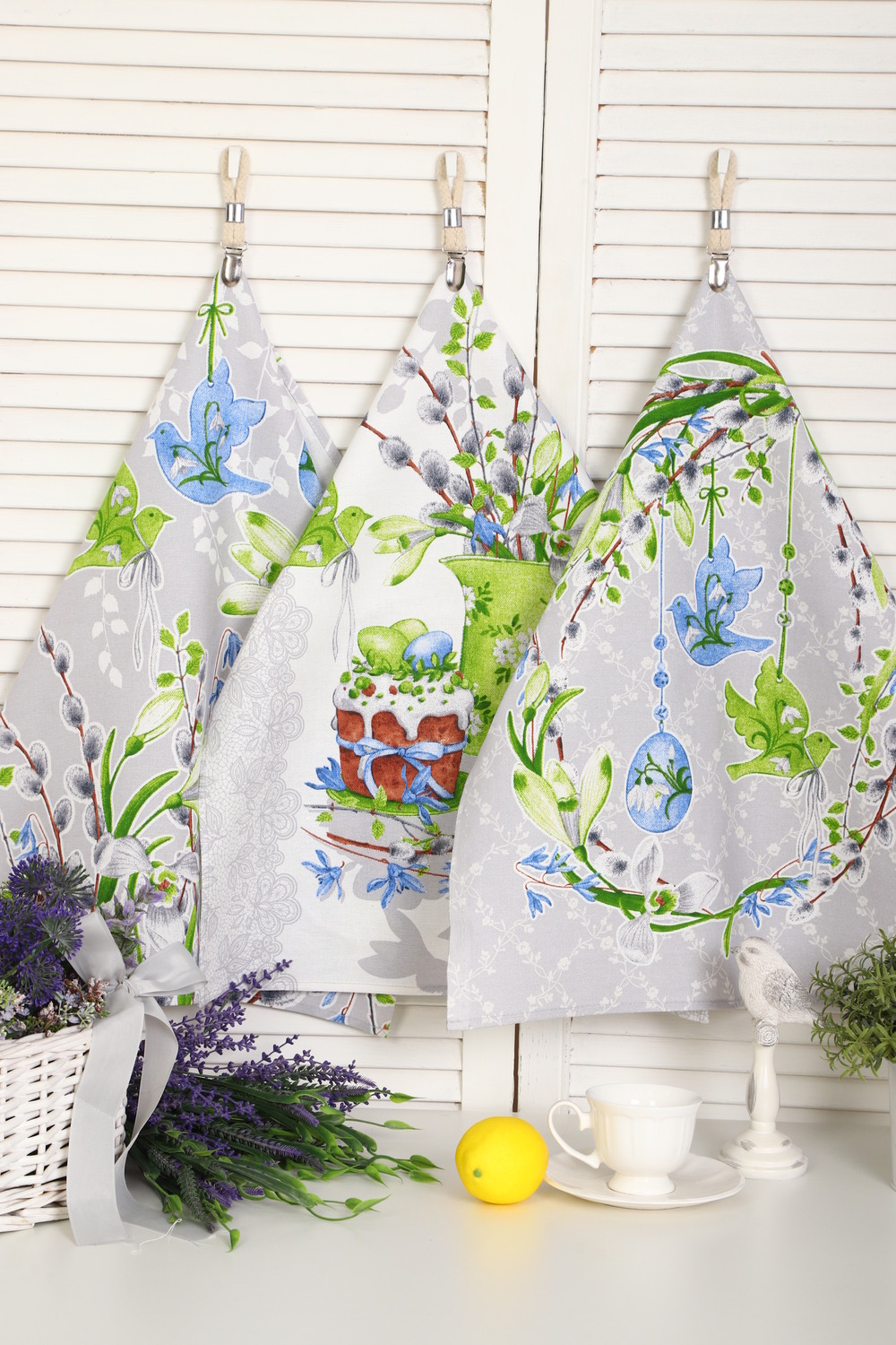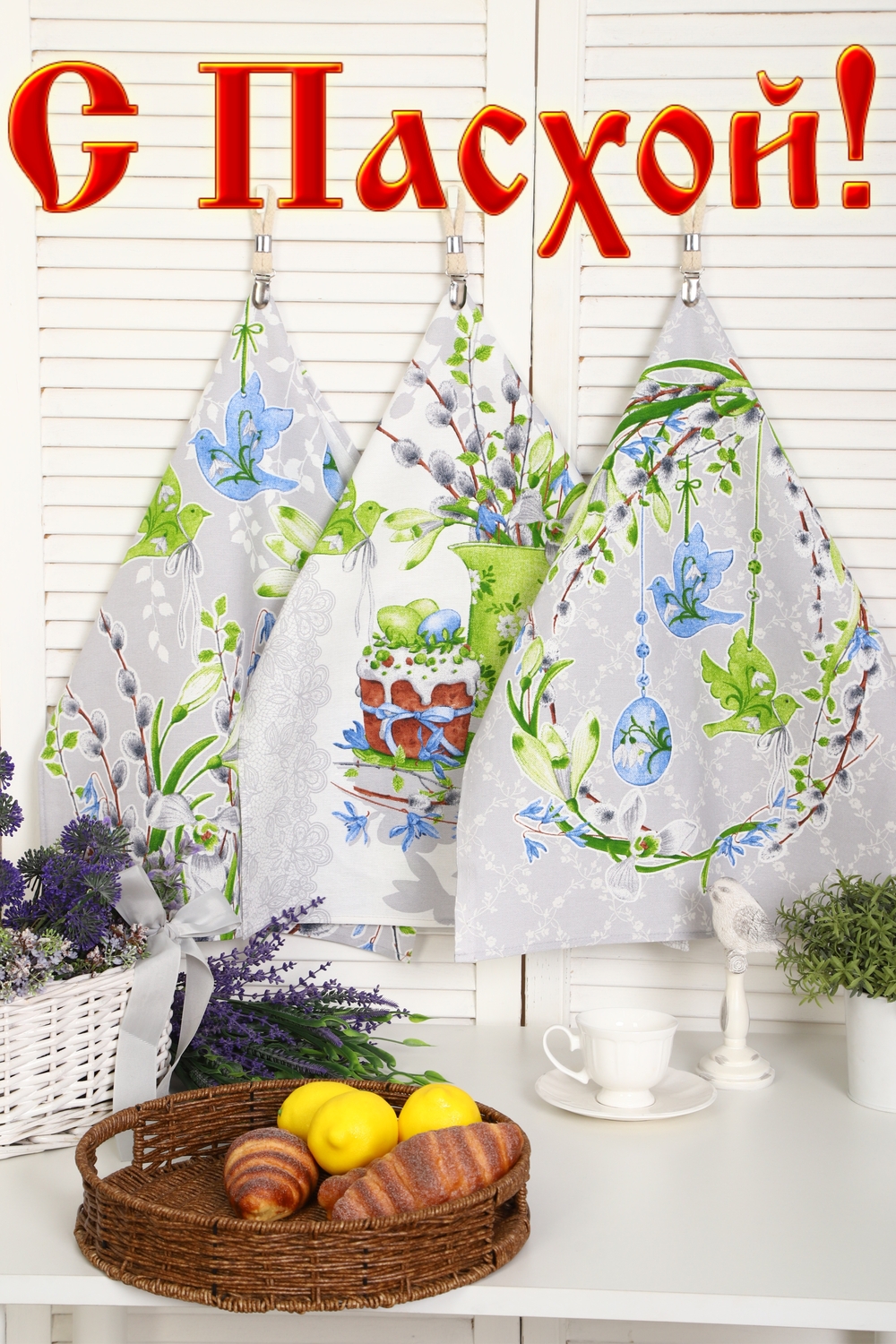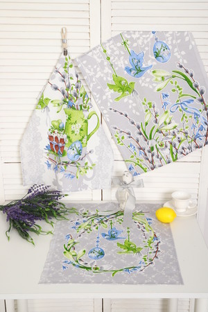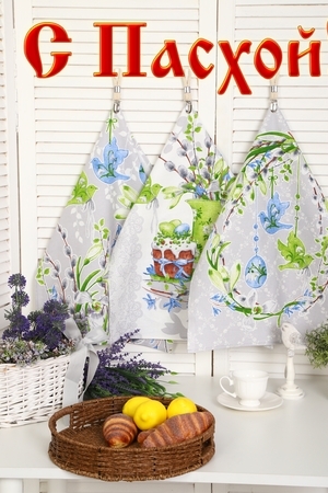 Набор из трех кухонных полотенец размером 60*48 см. Выполнены из прочного хлопчатобумажного полотна - рогожка. Отлично впитывают влагу, сохраняют цвет и форму после стирки. Каждое полотенце с индивидуальным рисунком, посвященным светлому празднику Пасхи Христовой. Порадуйте себя и своих близких приятным подарком на праздник!