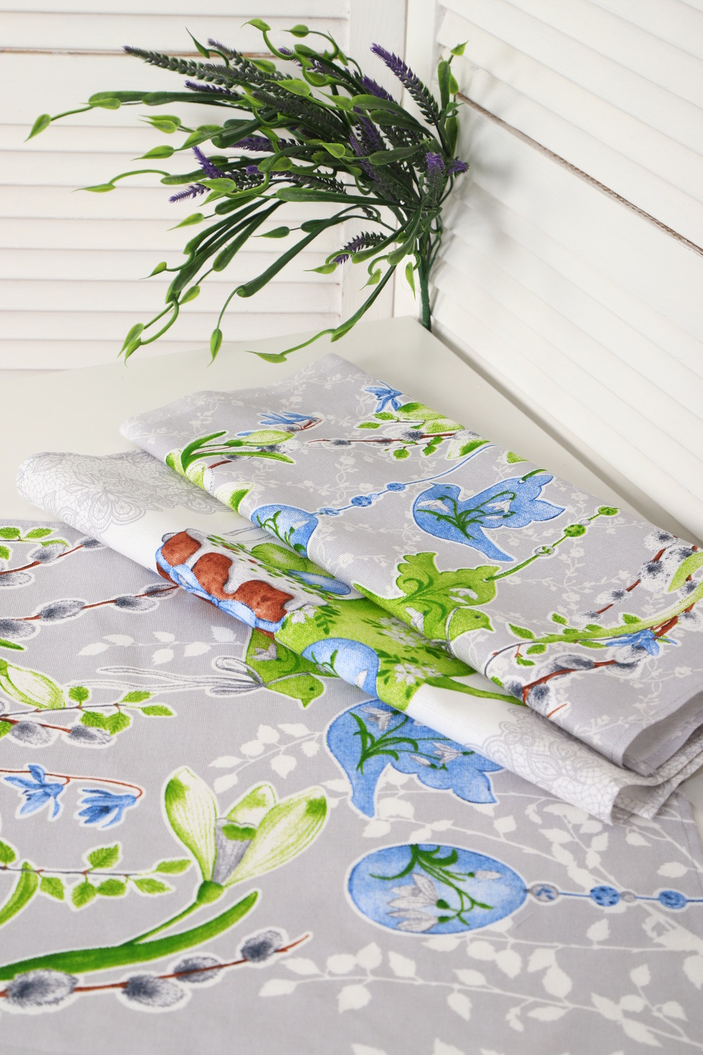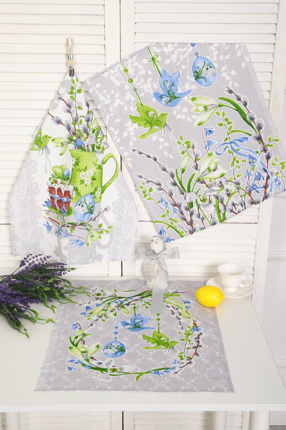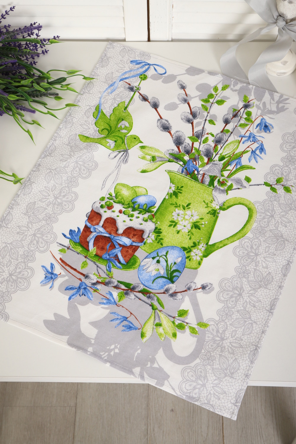 Набор из трех кухонных полотенец размером 60*48 см. Выполнены из прочного хлопчатобумажного полотна - рогожка. Отлично впитывают влагу, сохраняют цвет и форму после стирки. Каждое полотенце с индивидуальным рисунком, посвященным светлому празднику Пасхи Христовой. Порадуйте себя и своих близких приятным подарком на праздник!