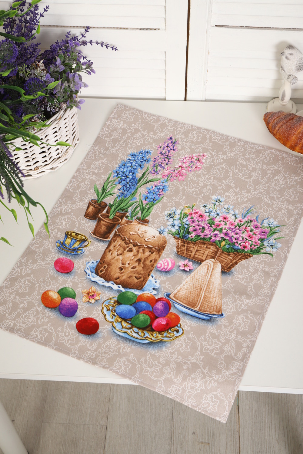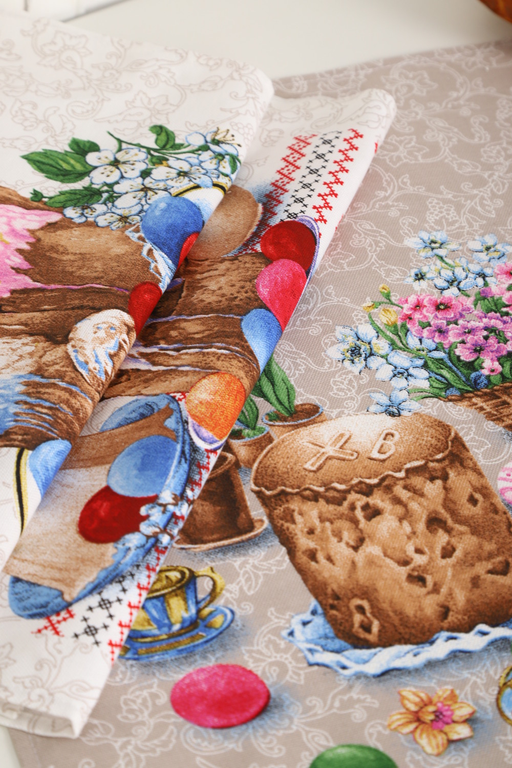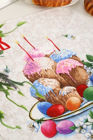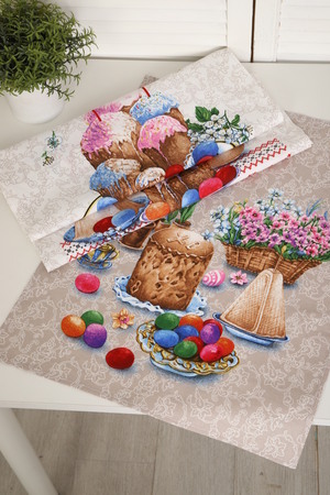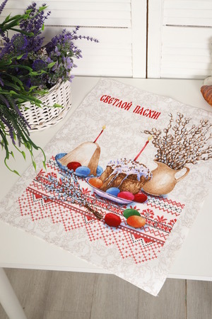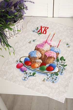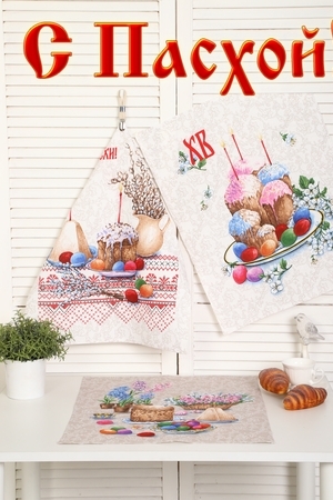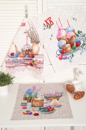 Набор из трех кухонных полотенец размером 60*48 см. Выполнены из прочного хлопчатобумажного полотна - рогожка. Отлично впитывают влагу, сохраняют цвет и форму после стирки. Каждое полотенце с индивидуальным рисунком, посвященным светлому празднику Пасхи Христовой. Порадуйте себя и своих близких приятным подарком на праздник!