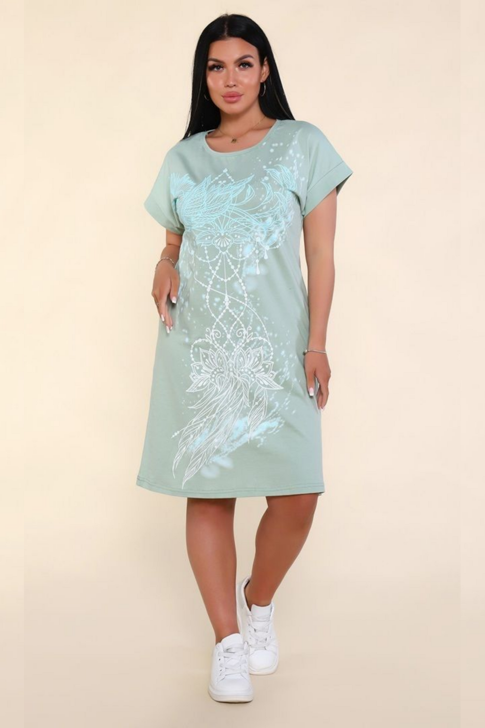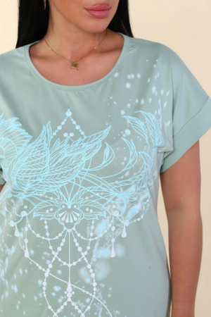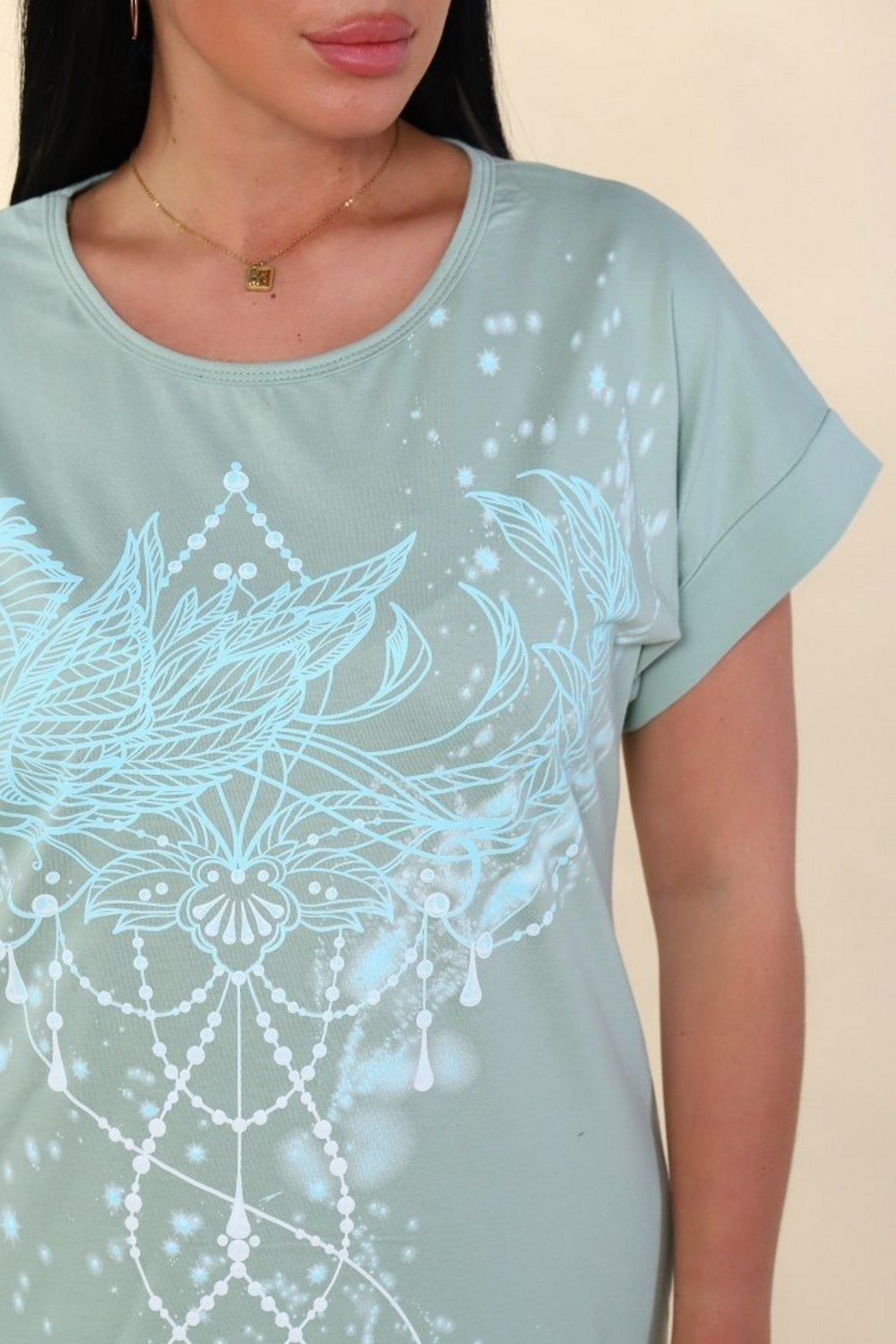 Женская туника с принтом "Northern Lights" – это изделие из 100% хлопка с ярким, красочным рисунком во всю длину, доступное в широком размерном ряду от 48 до 60 размеров.