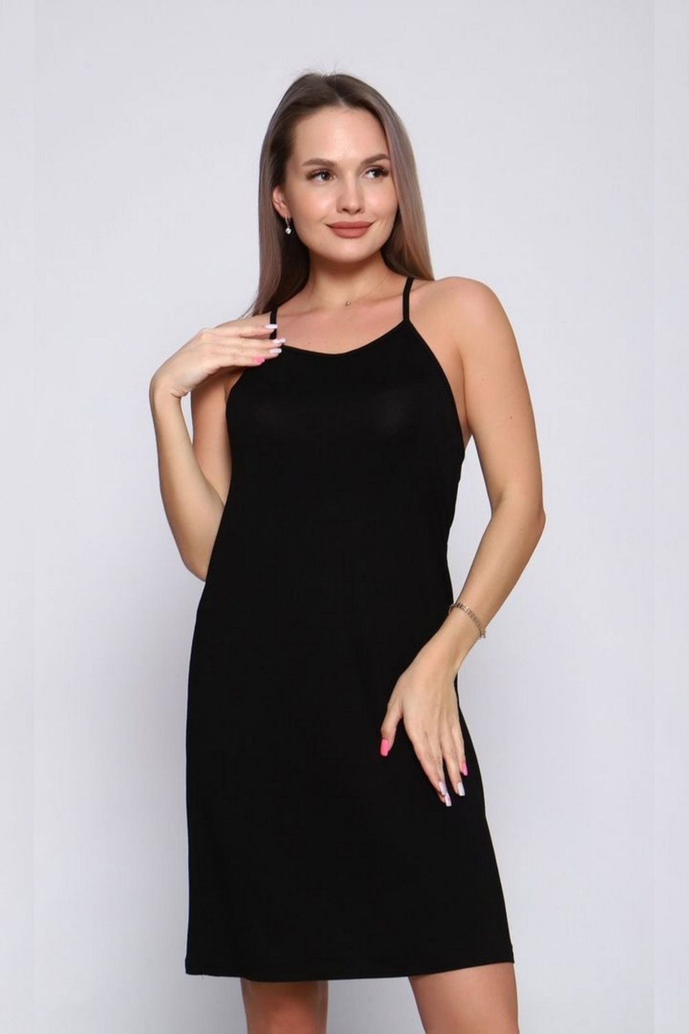 Женская сорочка из вискозы с кружевной отделкой на спинке сочетает в себе комфорт и элегантность, предлагая мягкий, приятный к телу материал с изящной дизайнерской деталью