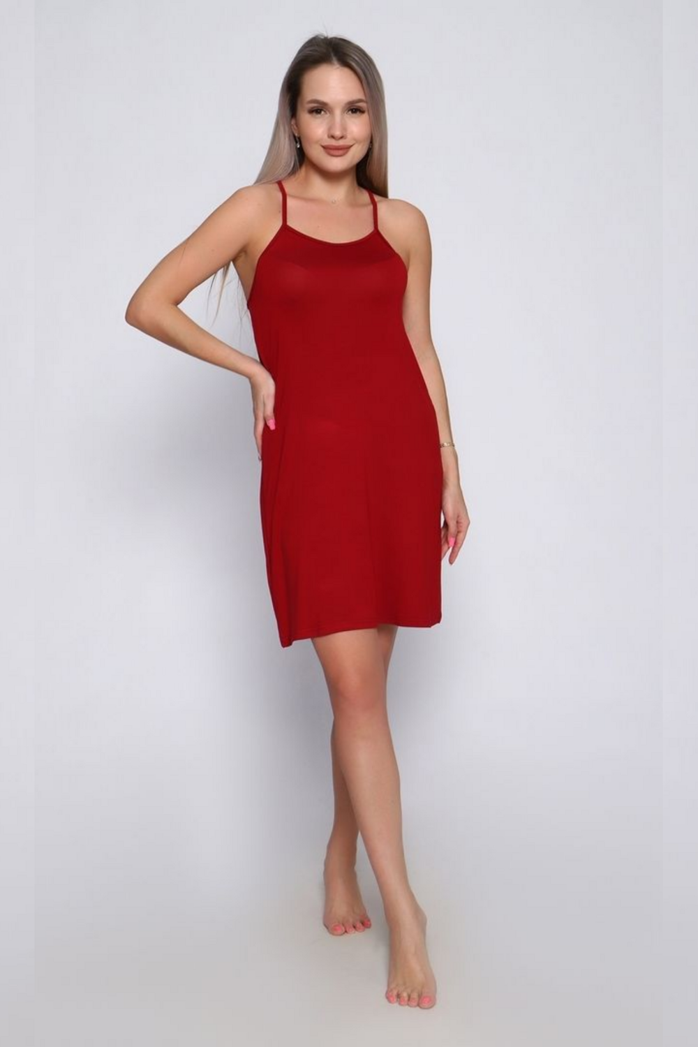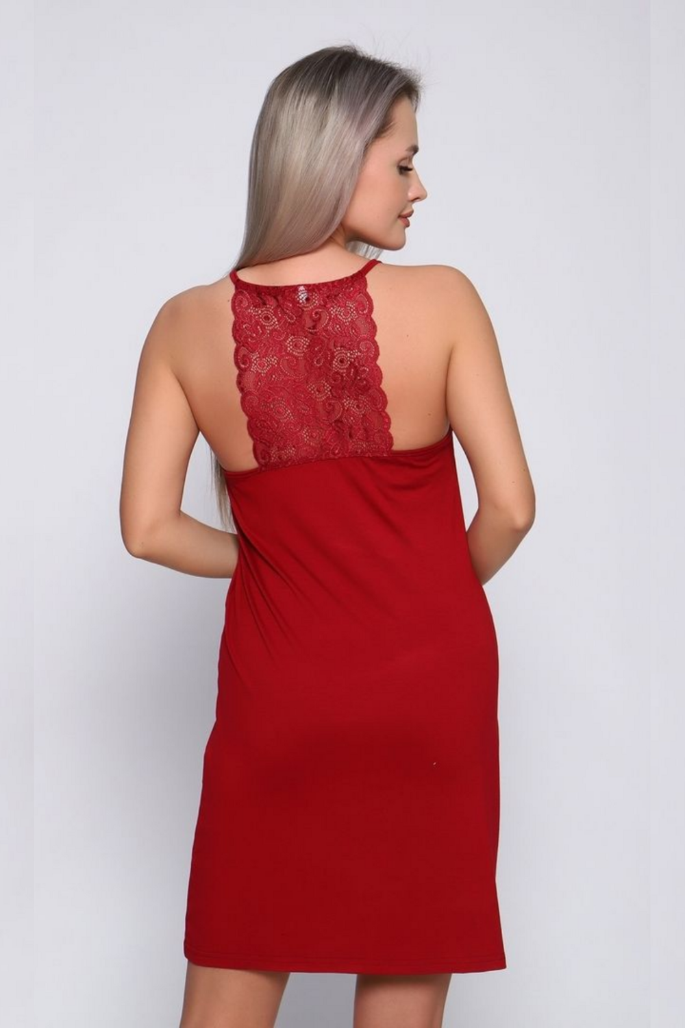 Женская сорочка из вискозы с кружевной отделкой на спинке сочетает в себе комфорт и элегантность, предлагая мягкий, приятный к телу материал с изящной дизайнерской деталью
