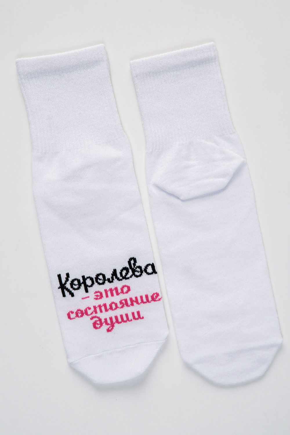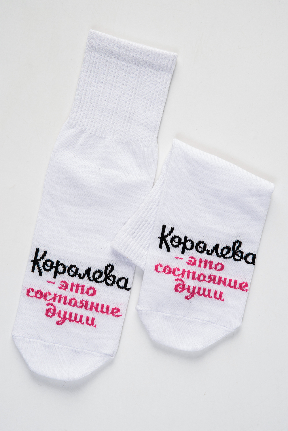 Добавьте изюминку в свой повседневный образ! Белые носки с яркой надписью «Королева – это состояние души» вдохновят на уверенность и поднимут настроение каждый день. Мягкий хлопок, идеальная посадка — выбирайте стиль, который говорит за вас! Подходят для подарка и для себя любимой.