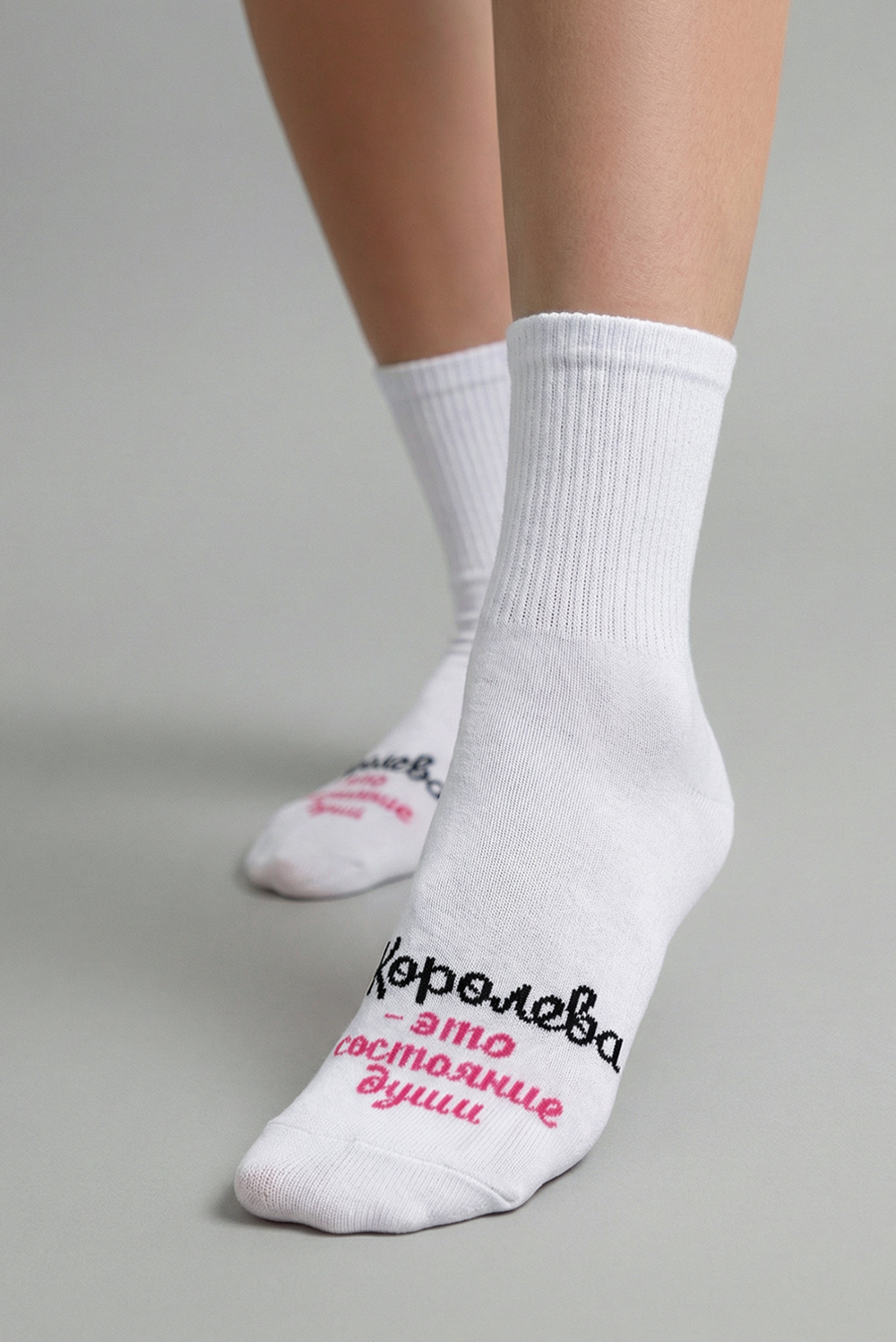 Добавьте изюминку в свой повседневный образ! Белые носки с яркой надписью «Королева – это состояние души» вдохновят на уверенность и поднимут настроение каждый день. Мягкий хлопок, идеальная посадка — выбирайте стиль, который говорит за вас! Подходят для подарка и для себя любимой.