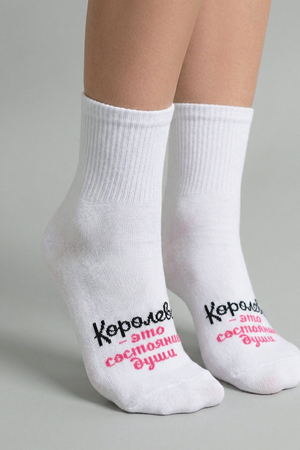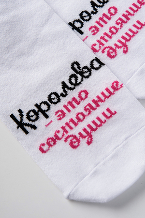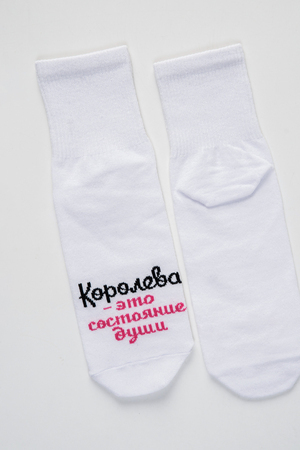 Добавьте изюминку в свой повседневный образ! Белые носки с яркой надписью «Королева – это состояние души» вдохновят на уверенность и поднимут настроение каждый день. Мягкий хлопок, идеальная посадка — выбирайте стиль, который говорит за вас! Подходят для подарка и для себя любимой.