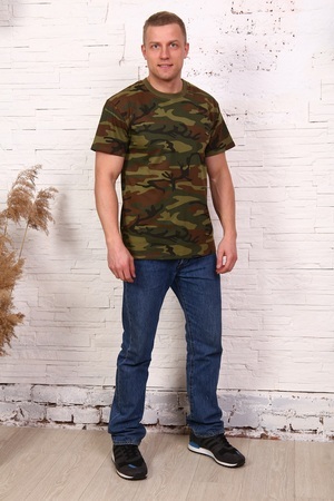 Футболка мужская с коротким рукавом, разноцветная (маскировочный рисунок), 100% хлопок. В двух цетах: зелёном и сером (разных оттенков и рисунков согласно фото).