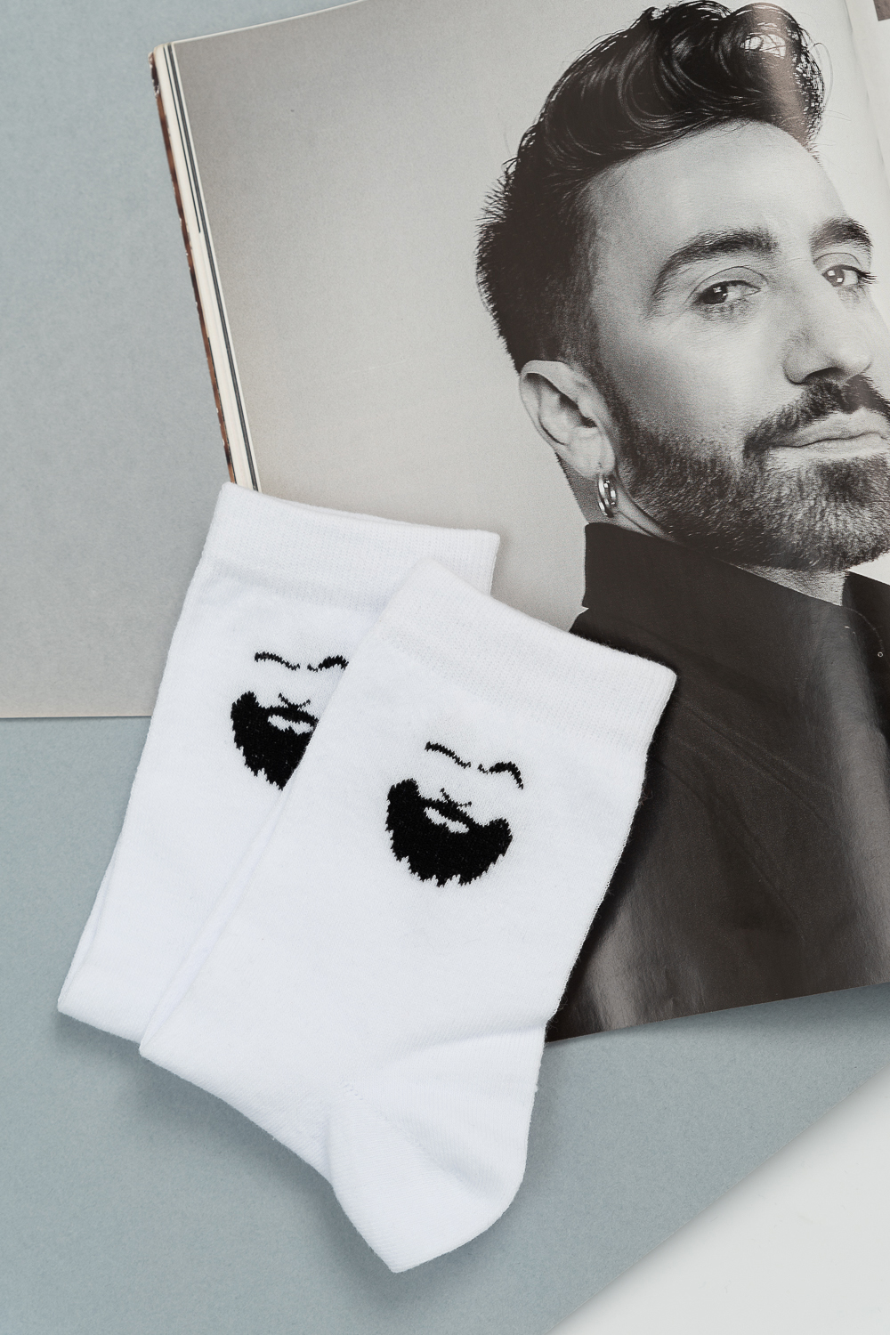 Стильные мужские носки комплект 2 пары, на выбор двух цветов. На боковой части оригинальное изображение силуэта.