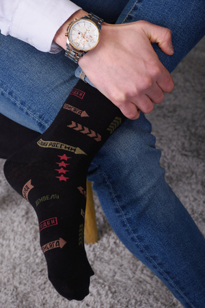 Носки мужские с оригинальным принтом. В комплекте 3 пары. Прекрасный сувенир на 23 февраля.