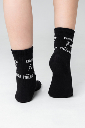 Подростковые носочки с креативной надписью, связанные из натурального хлопка. Креативная модель мягко облегает ногу, не доставляя дискомфорт в течение всего дня. Носки сочетаются с разной обувью, подходят как мальчикам, так и девочкам.