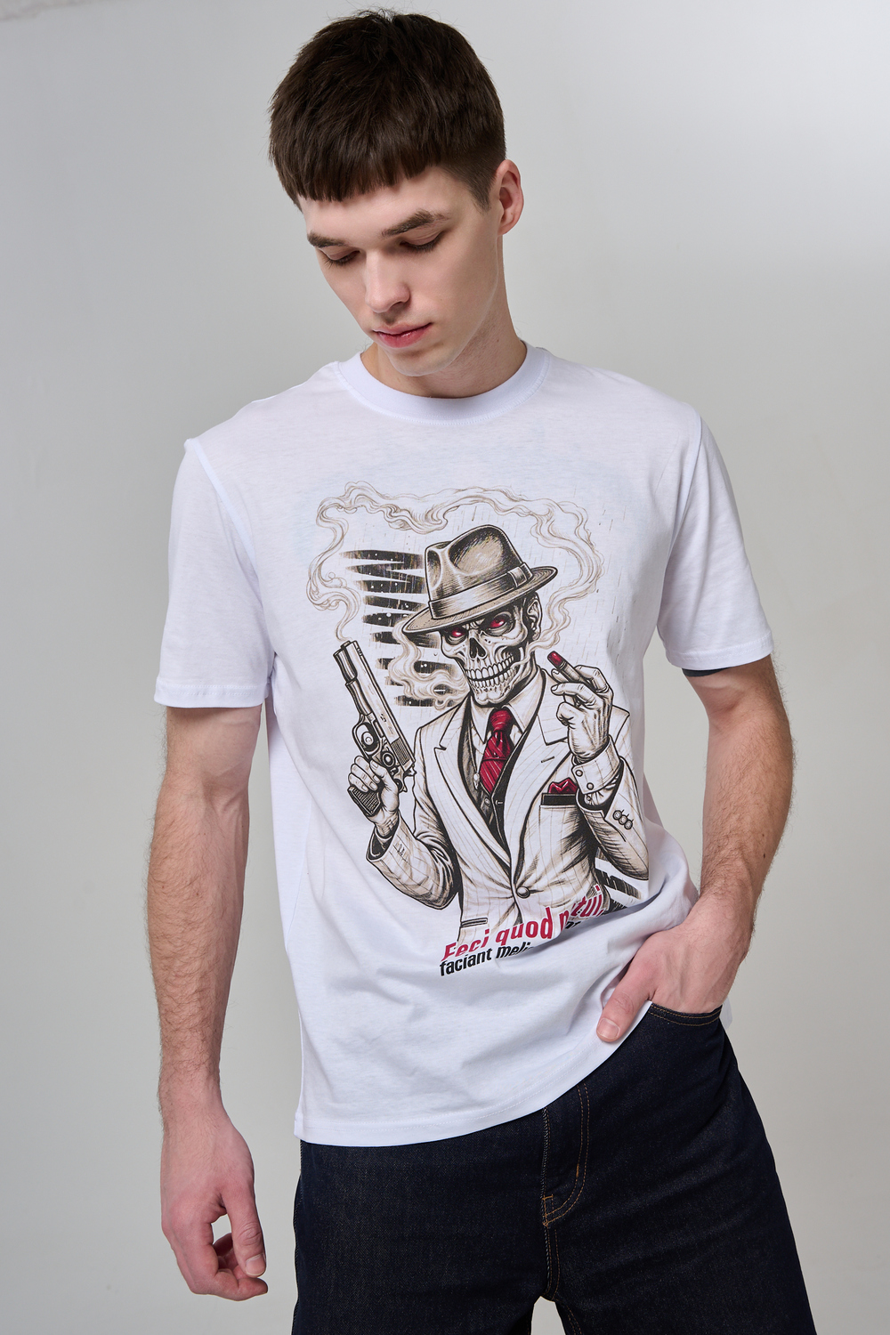 Погрузи свой стиль в атмосферу настоящей фантастики с этой уникальной футболкой! Брутальный принт в стиле киберпанк с механическим черепом и яркими деталями моментально привлечёт внимание и подчеркнёт твой характер. Высококачественный хлопок обеспечивает комфорт и долговечность, а эксклюзивный дизайн выделяет из толпы. Подчеркни свою индивидуальность, выбери футболку для тех, кто не боится быть в центре внимания!