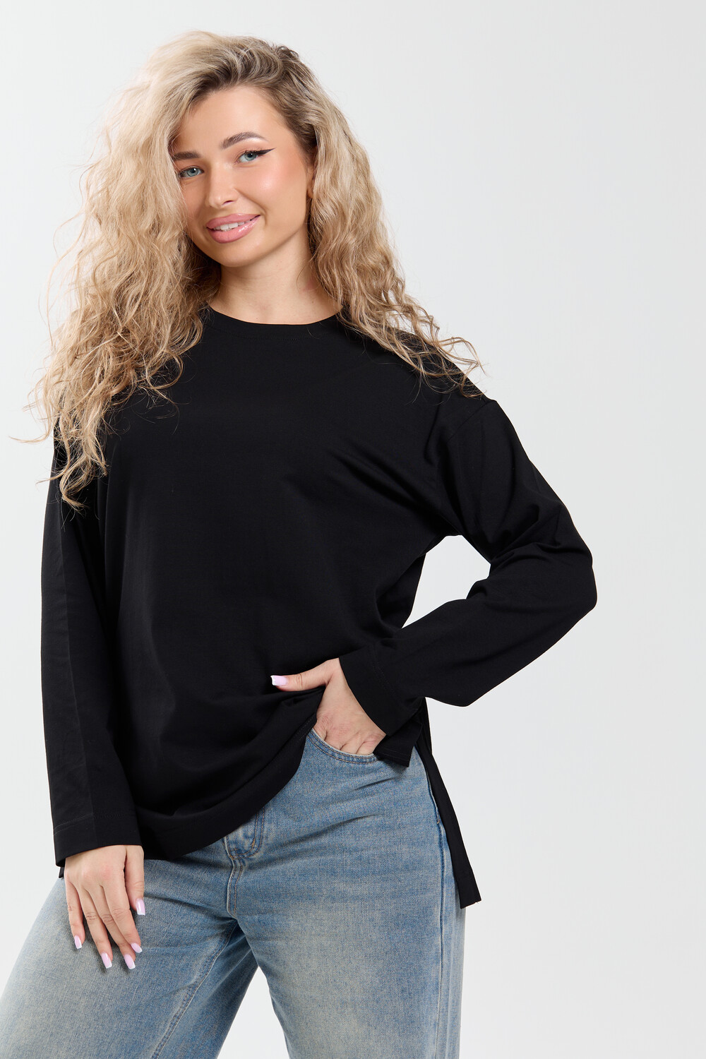 Женский лонгслив оверсайз — это базовая и универсальная вещь, которая станет отличным дополнением к вашему гардеробу. Свободный крой обеспечивает комфорт и удобство, а классические цвета позволяют сочетать лонгслив с различными элементами одежды.