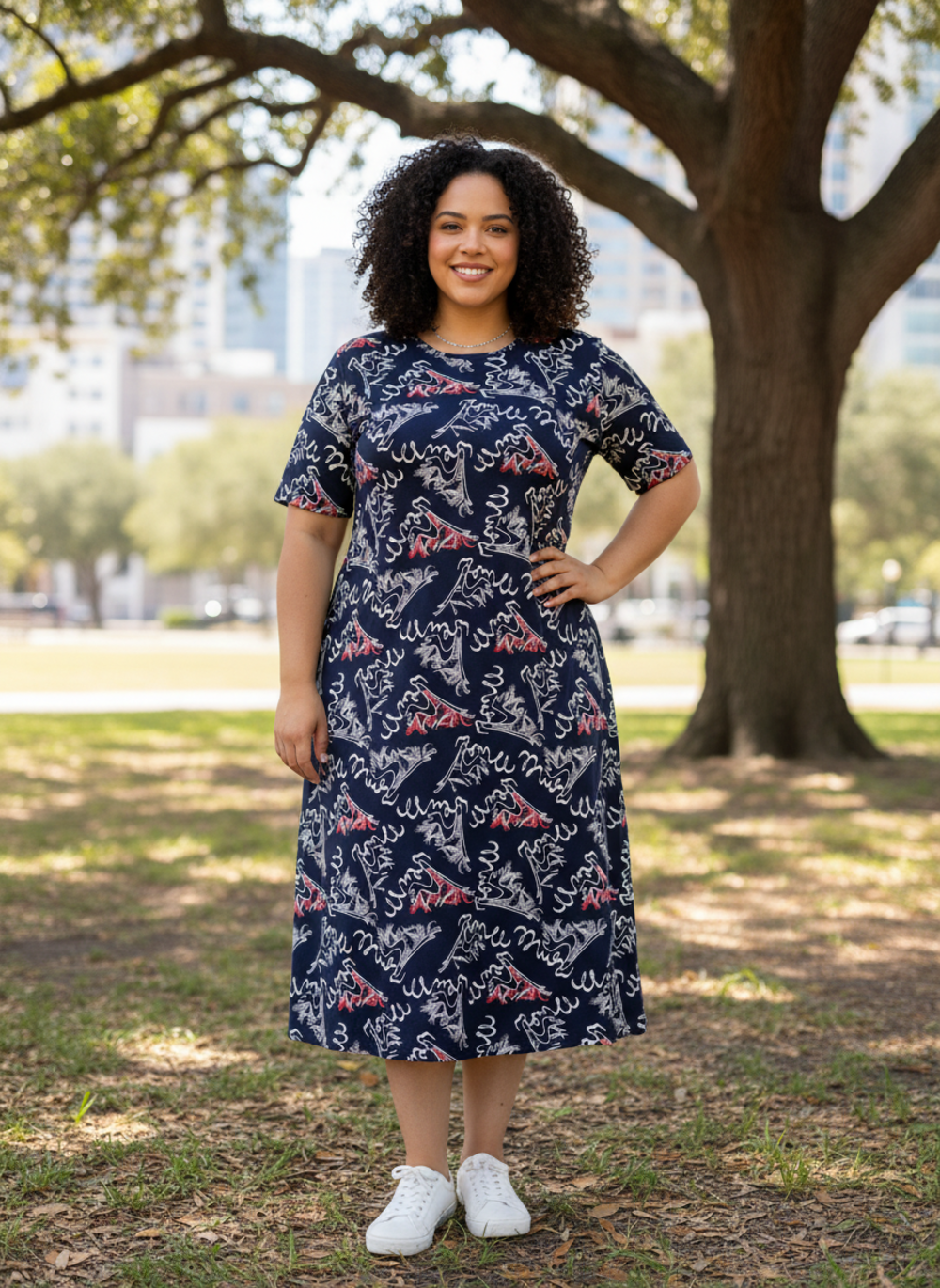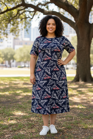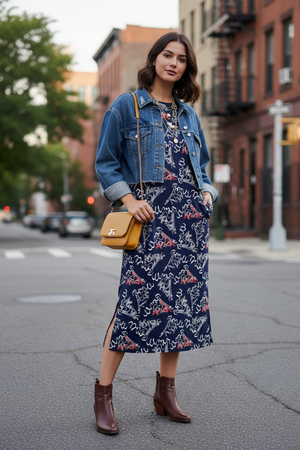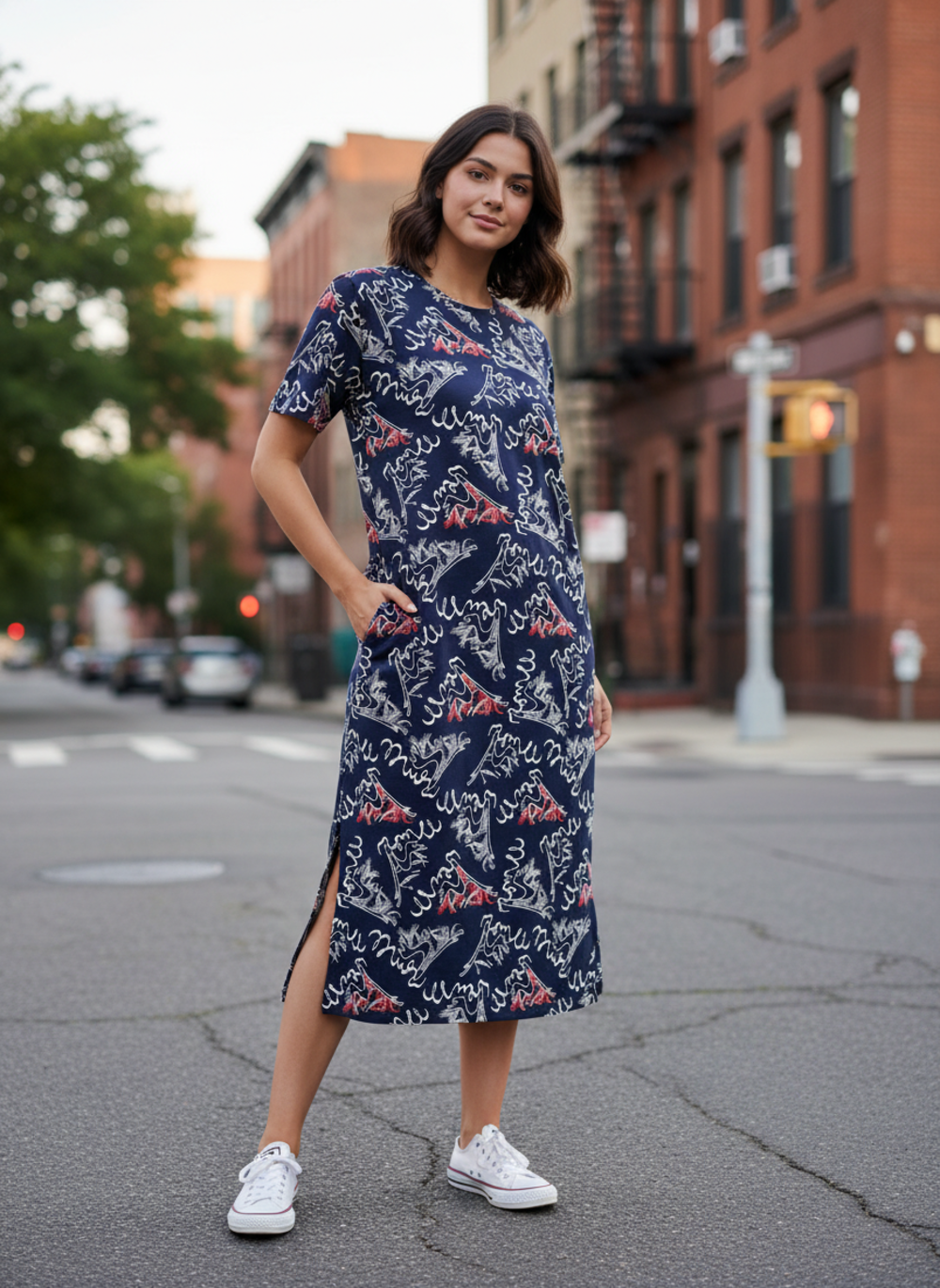 Теплое женское платье свободного кроя — идеальный выбор для осенне-зимнего сезона. Его длина прекрасно подчеркивает силуэт, создавая женственный и элегантный образ. Платье отличается удобством и практичностью благодаря принту, который добавляет нотку стиля.
