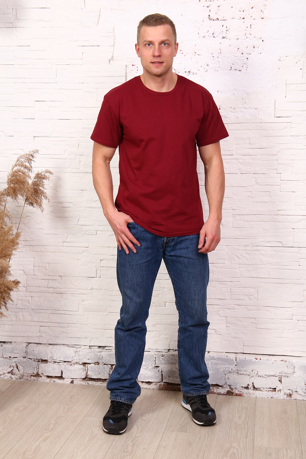Футболка однотонная мужская, с коротким рукавом. Хлопок 100%. Комфортный вариант на круглый год.
