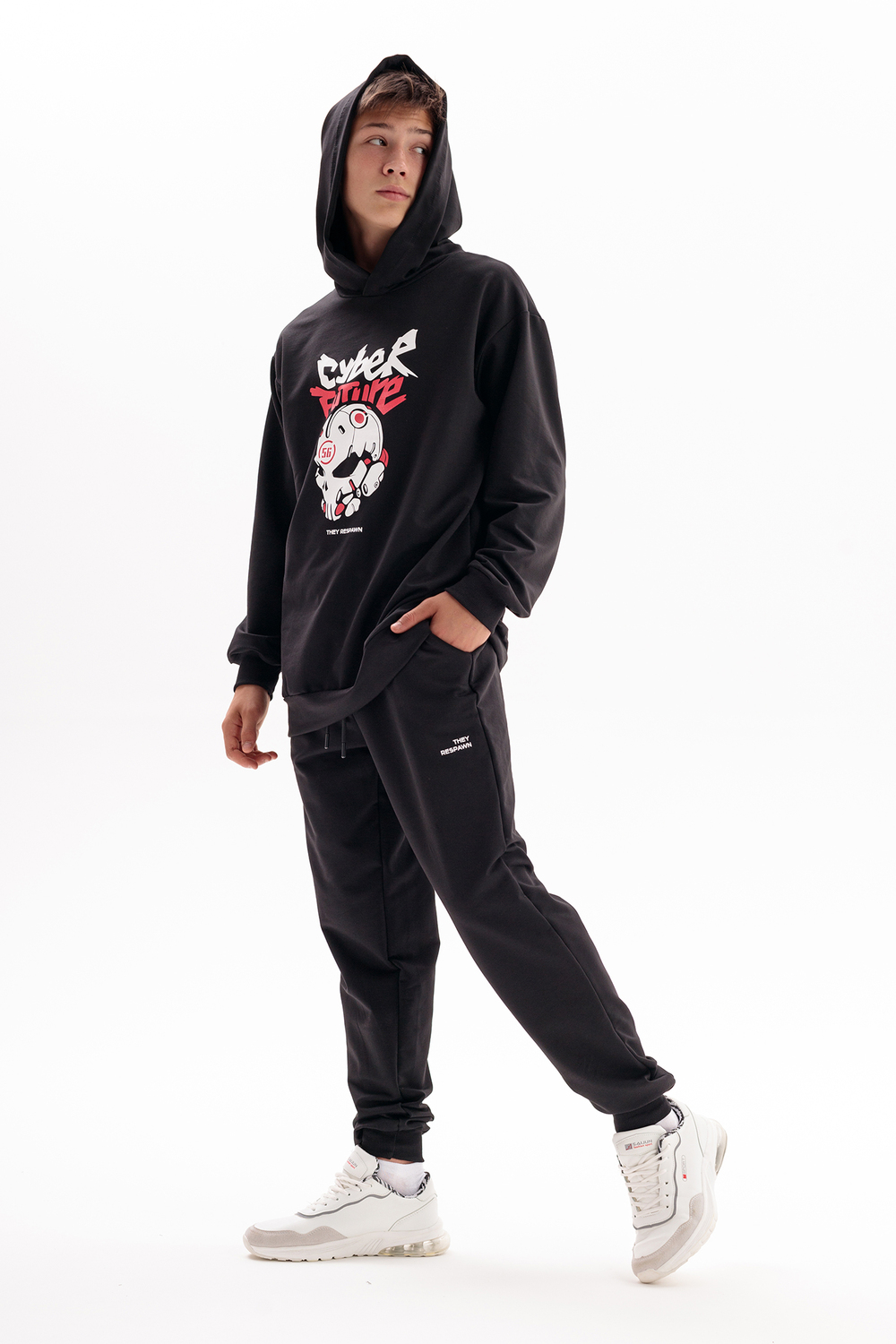 Спортивный костюм с брюками джоггерами для вашего подростка. Откройте новые горизонты комфорта и стиля для вашего ребенка с оригинальным спортивным костюмом, состоящим из удлиненной толстовки с глубоким капюшоном и джоггеров. Этот костюм, выполненный в оверсайз стиле, станет идеальным дополнением к гардеробу любого мальчика или подростка, ценящего удобство и модные тенденции. Изготовленный из дышащего материала на основе хлопка 75%, костюм обеспечивает комфорт в теплую осень и лето, будь то активные занятия спортом, игра в баскетбол, катание на велике, скейте или самокате. Модный спортивный костюм для мальчиков является отличным вариантом школьной формы для физкультуры.