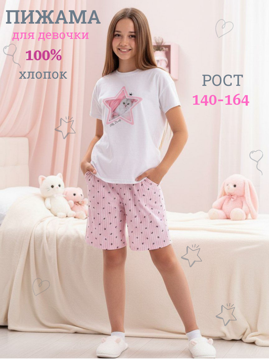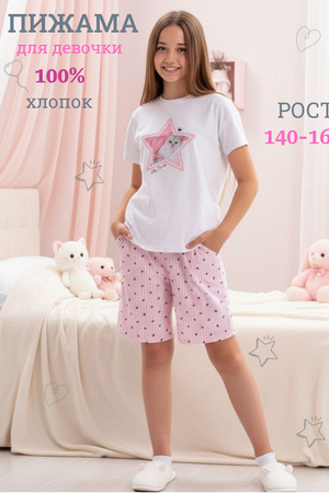 Детская пижама из коллекции бренда Круттостайл. Яркие комплекты для девочек включают футболку и шортики с красивым принтом. Удобная пижама понравится маленьким модницам и станет хорошим выбором для вечернего отдыха и ночного сна. Футболка с коротким рукавом и шорты на мягкой резинке с карманами помогут создать стильный образ для фотосессии или домашней пижамной вечеринки с подружками или в детский садик. Легкий комплект из 100% мягкого хлопка идеально подойдёт для вечернего семейного отдыха. Это современная красивая и удобная домашняя одежда премиум – качества для активных девчонок, ценящих комфорт! Домашний костюм - двойка подойдет для теплых летних и осенних месяцев. Это хороший выбор для осени или зимних дней, ведь нарядную пижамку из высококачественного дышащего трикотажа (кулирка) комфортно носить. Это классическая модель со свободной укороченной кофточкой прямого кроя и широкими шортиками, которая станет секретом крепкого сна вашего ребенка! Размерная сетка включает маленькие и большие размеры, позволяя подобрать костюмчик для высоких, невысоких или полных маленьких модниц с разными особенностями фигуры и роста. Подарите дочке или внучке пижамку белого или коричневого цвета с милыми рисунками корон, звездочек, котика или мишки. Любой комплект станет шикарным выбором для домашнего уютного лука и комфортного сна. Классный пижамный комплект российского производства обеспечивает свободу движения и подходит для повседневной носки. Он поможет маленькой леди оставаться элегантной даже во время отдыха. Выбирайте пижамы с рисунками для любимой дочери, крестницы или племянницы в качестве заботливого и модного подарка. Крутой комплект из футболки и шорт будет актуален весной и летом, осенью и в зимние месяцы. Это базовое приобретение для домашнего гардероба ребенка. Уютная пижама для подростков в молодежном стиле – это популярный выбор для современных девчонок, которые в тренде! Отличный подарок на день рождения